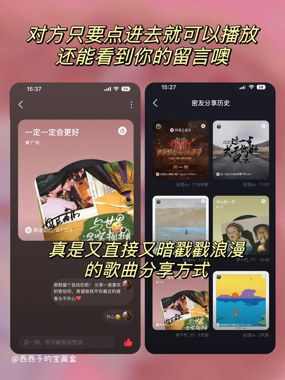 ❤️原来喜欢的歌和此时此刻听一首歌的心情,是可以跨越手机实时同频分享给对方的!