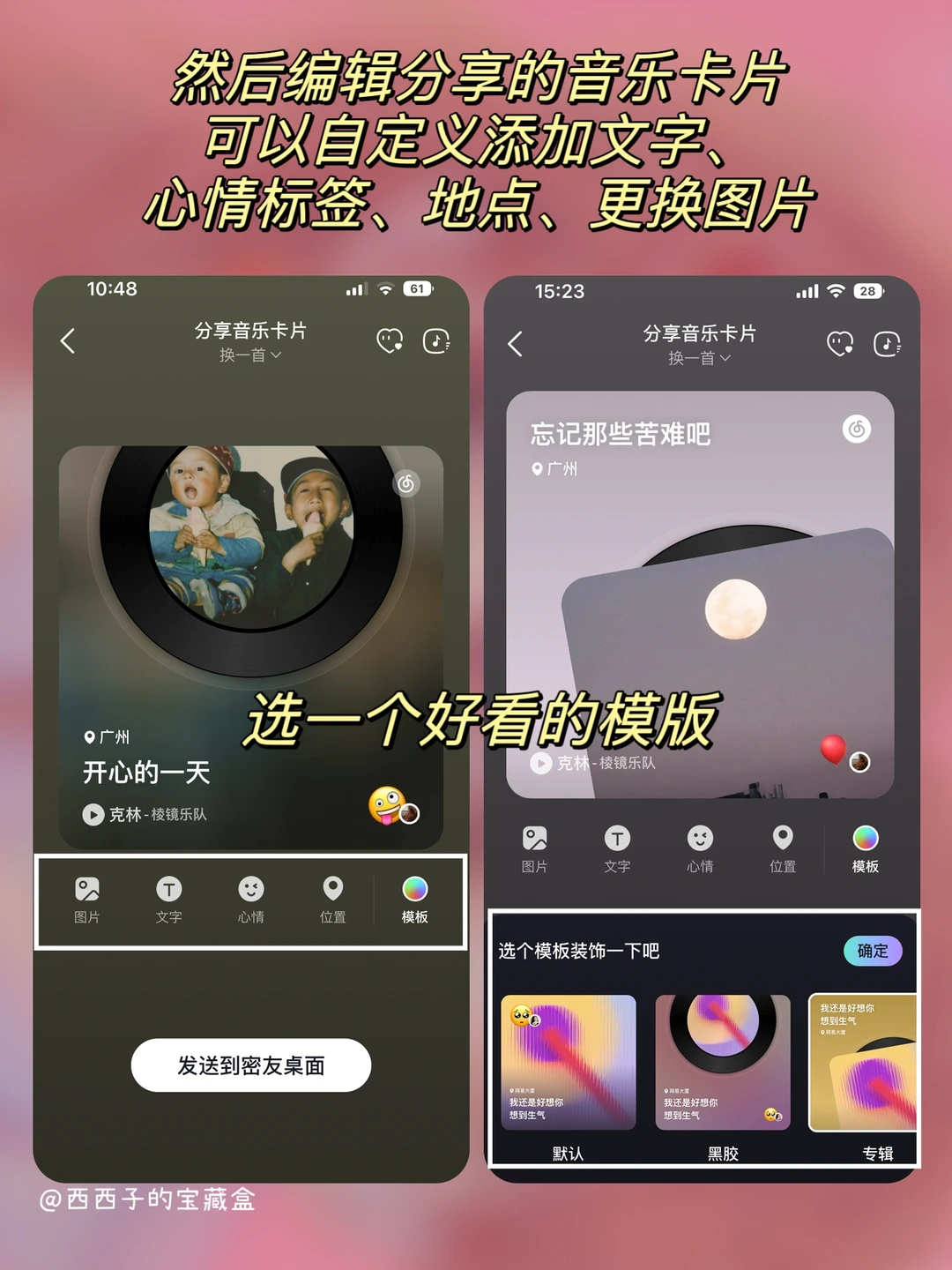 弹送的音乐卡片可自定义歌曲封面图片、文字、地点、和心情标签!