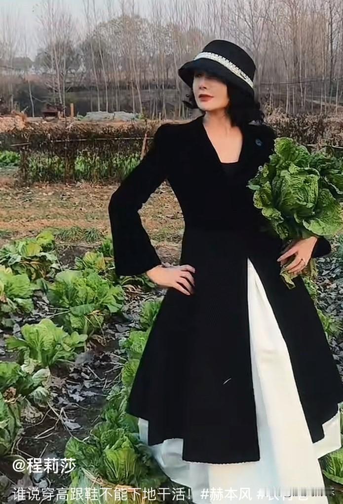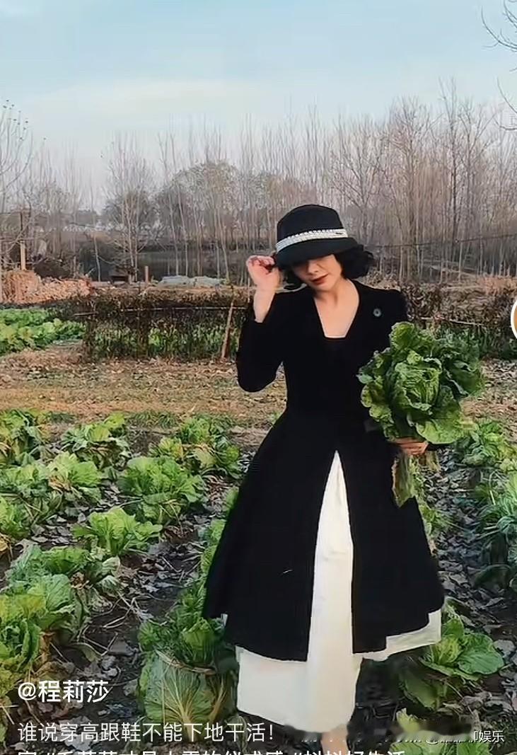 她是一个不管怎么做作都不会被骂的女星,万千网友都想成为她,但却只有羡慕她的份。 她的老公是她主动追来的,没想到结婚后她被宠成了公主,最近她跟随老公,回到山东老家,穿着赫本公主裙,干着农活,脸上洋溢着幸福的笑容。 这个人就是程莉莎。 近日,她在社交平台发布了回山东临沂婆婆家的视频,那叫一个又洋又接地气。 她穿着黑色长袖赫本裙,戴着黑色赫本帽,一扭一扭的走在郭晓东家的白菜地里,然后蹲下拔了一颗白菜。 抱着白菜又一扭一扭的走出菜园,顺便还摆了一个Pos,那么土的白菜地竟然在她的衬托下,显得有些“精致土”了。 有网友在下面评论: “今年临沂的白菜本来就贵,这下更贵了。” 网友可真会说,一下就说到了重点。 程莉莎还穿着赫本裙,在婆婆家院子里干农活。 拿着大的舀水勺,掀开火炉子上的大铁锅,准备舀水。 她还拿着两根玉米棒,一边搓玉米粒,一边幸福的笑着。 虽然这都是摆拍,又美又做作,但一点都不让人讨厌。 网友评论说: “她拿着水舀,都像拿着国际大牌的包包。” “一件普通的东西,放在她手上都变成洋气的东西了。” 她有一个爱她的老公和爱她的婆婆,她每次回山东老家,她婆婆都会给她准备一双新的红色筷子,她喜欢吃什么,她婆婆就做什么,从来不让她干一丁点儿活。 放眼望去,娱乐圈里只有她在婚姻里活成了公主的模样,每天都向老公撒娇,各种做作,她的老公每天都接住了她的做作,永远都用宠溺的眼神望向她。 谁不想要这样的老公和这样的婚姻呢?
