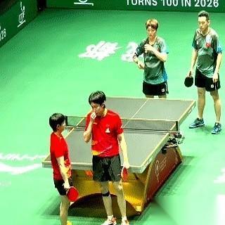 裁判问完话,全场鸦雀无声。 两个大男人,加上对面俩,四双眼睛齐刷刷地盯着一个正在埋头系鞋带的姑娘。 那画面,你说好笑不好笑。 大头(王楚钦)明明被裁判点名了,让他选边。他倒好,脖子一伸,跟探照灯似的,就往莎莎那边瞅。 更好玩的是,对面的黄杜组合,也跟着瞅。 好像全世界都知道,这事儿,他俩说了不算。得等那个“话事人”抬起头来,点个头,这局才能开。 真的,看他们几个人打球,一半是技术,一半是人情世故。 彼此熟得跟左手摸右手似的,场上那些小眼神、小动作,全是戏。你一个假动作想骗我,我一个回球的角度就告诉你“我早看穿了”。 打的哪是球啊。 打的是心理战,打的是谁比谁更懂谁。 所以啊,下次再看到场上有人慢悠悠系鞋带,别催。 可能人家不是在拖延时间,是在……决策未来。
