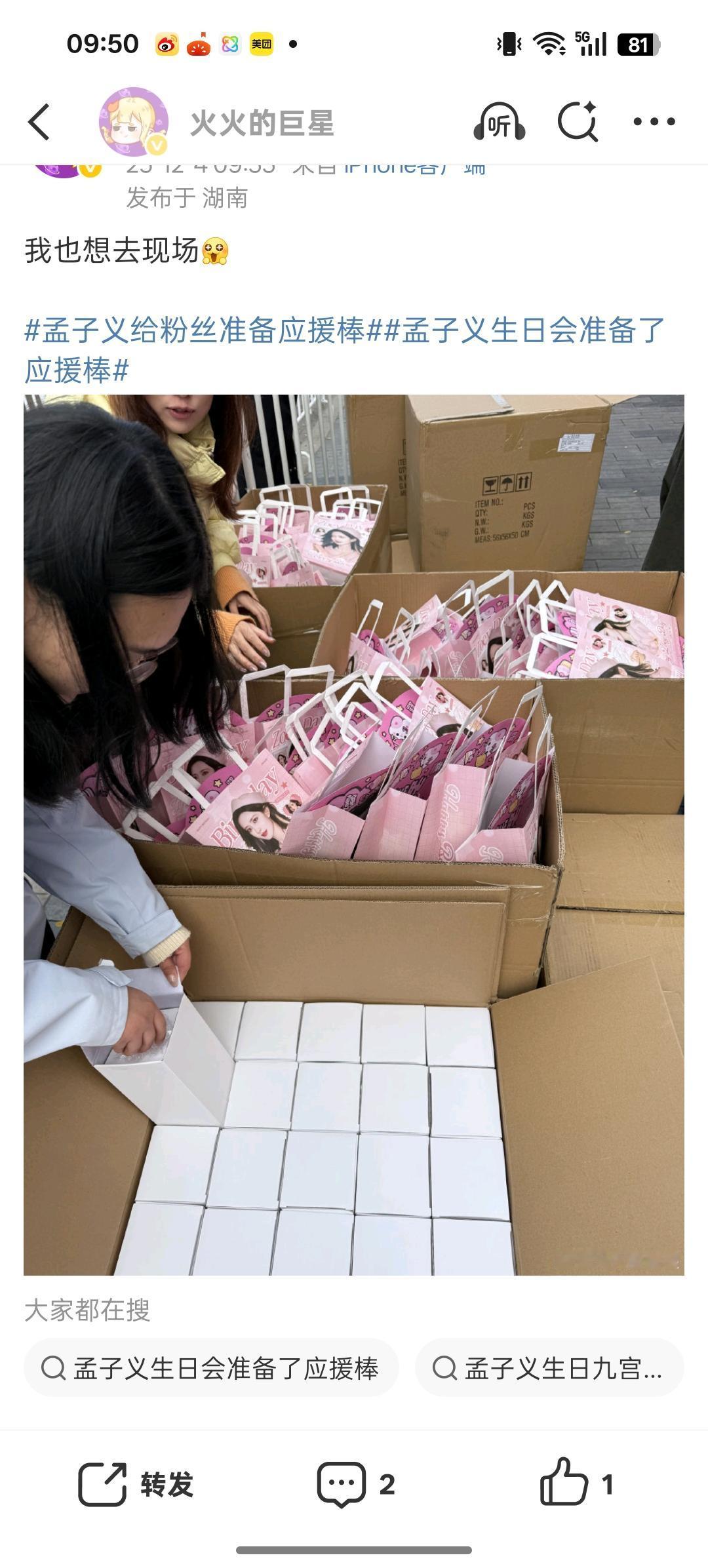 孟姐宠粉再升级!生日会定制应援棒藏着小惊喜! 内娱宠粉天花板孟子义又搞事了! 12月4日生日会前夕,“孟子义生日会准备了应援棒”话题引爆全网,多个认证账号透露她将为到场粉丝送上专属定制应援棒,虽样式未公开,却让粉丝期待值拉满。 据悉此前应援棒多是粉丝的心意表达:2025年3月《百花杀》开机,有粉丝手工制作“迷你应援棒”现场派发; 9月《尚公主》宣传期,“应援棒汇成银河,而你是北极星”的告白更是刷屏社交平台。 而孟子义的宠粉向来务实又走心,8月《尚公主》开机时,她为探班粉丝准备含定制帆布袋、防晒用品、小风扇的实用礼包,还附上手写祝福卡和拍立得合影券;得知粉丝凌晨布置现场,她不仅鞠躬致谢、安排餐饮,还会因粉丝合唱感动落泪。 有网友表示:“孟姐果然把粉丝放在心上!之前送卫生巾、杀青宴管饱,现在又定制应援棒,被宠的感觉太幸福了”“已经开始脑补应援棒的样子,会不会和她的作品元素相关?”; 还有网友说:“比起单纯收礼物,这种双向付出才显真诚,孟子义的宠粉从不流于表面”; 在我看来,孟子义的逆应援从不含糊,高温天送防晒、生理期递卫生巾、杀青宴管饱,礼物永远精准戳中粉丝需求。 粉丝用1205架无人机拼出“你值得所有光明”,300面注水旗+轻轨专列+户外大屏打造现象级应援。 她保存粉丝信件、机场佩戴粉丝礼物、直播弥补未到场粉丝遗憾,把粉丝当“家人”而非“追随者”。 所以……这些双向奔赴名场面你记得吗? 1. 孟子义曾在横店片场,身着古装就给粉丝递卫生巾,打破“月经羞耻”的坦荡圈粉无数; 2. 粉丝以她名义捐赠爱心路灯、救助听障儿童、关怀空巢老人,让应援充满正向社会价值;
