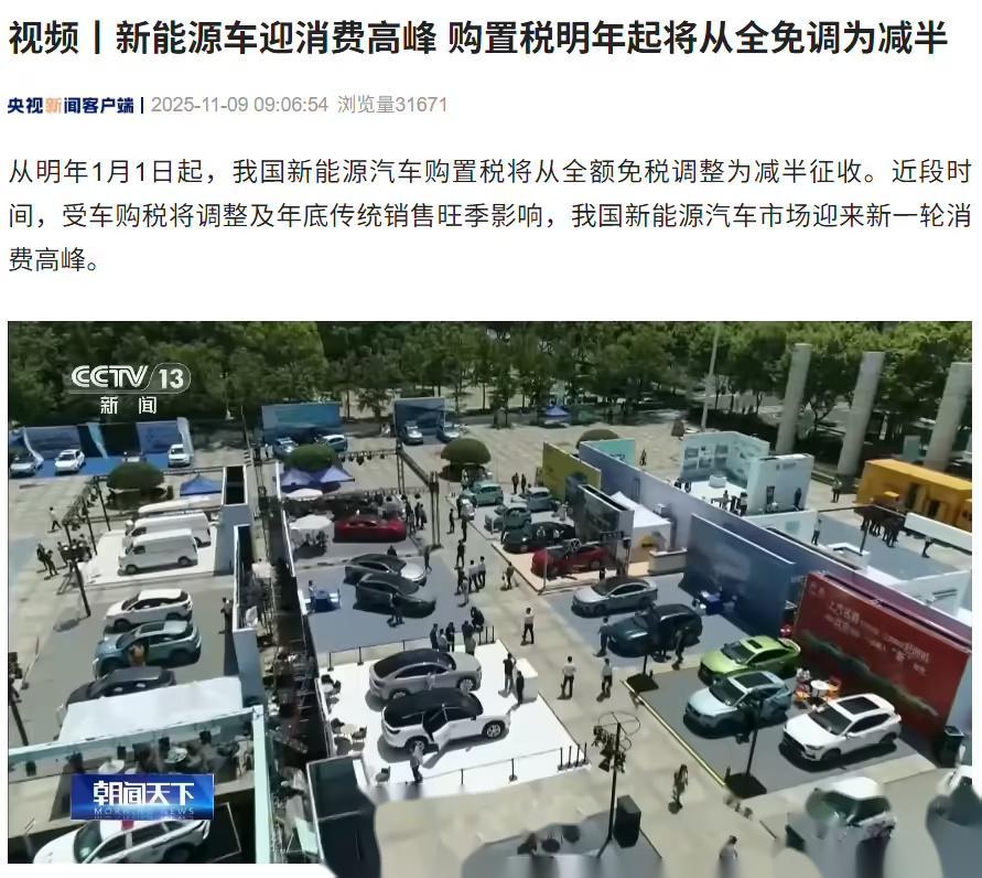 不再免征购置税——新能源车政策谢幕 据有关媒体报道:随着2025年年末临近,持续了十年的新能源汽车购置税免征政策即将于12月31日正式谢幕。自2026年1月1日起,该政策将调整为减半征收。 这一重大政策调整是行业从“政策托底”转向“市场竞争”的标志性节点: 现在政策退场,是因为“培育市场”的目标已经达成,该让市场自己“选选手”了。 行业进“淘汰赛”,消费者则能得实惠 一句话概括: 十年政策扶着新能源车“学走路”,现在它该自己“跑起来”了,这对行业是成年礼,对消费者是更实在的选择。 大家对新能源汽车免税政策的变化有何不同想法呢?请在评论区留言