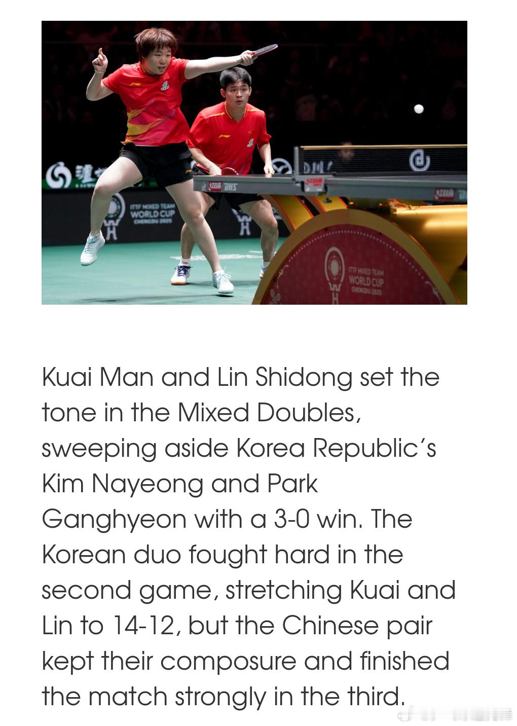乒乓世界杯超chill2025成都混合团体世界杯 收拾心情准备下班了,这样的