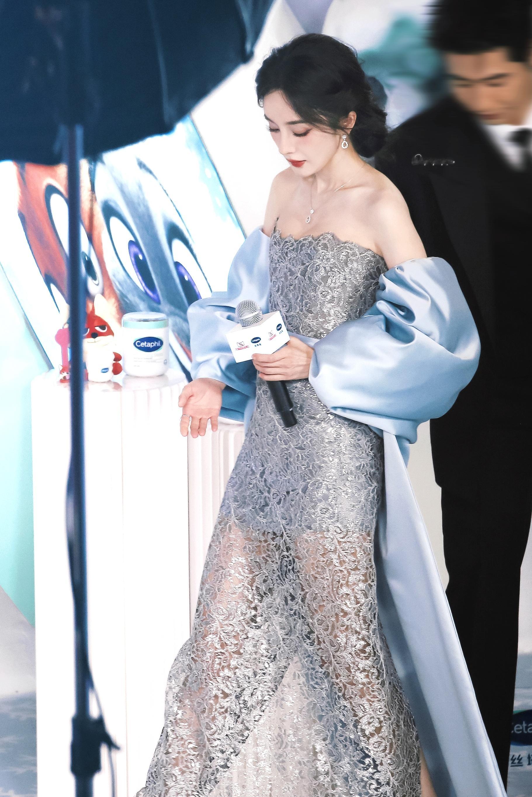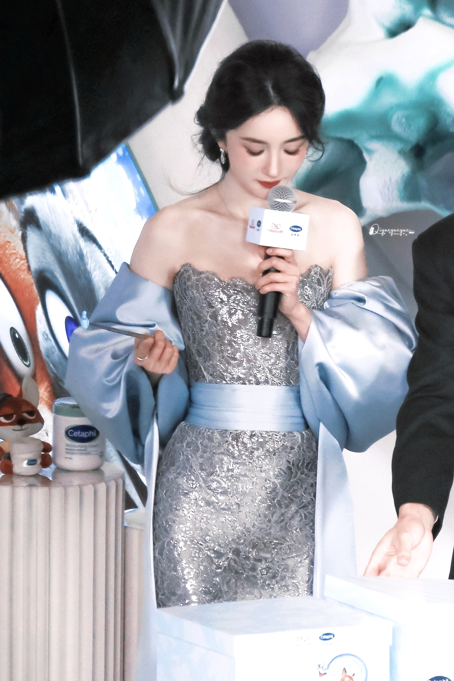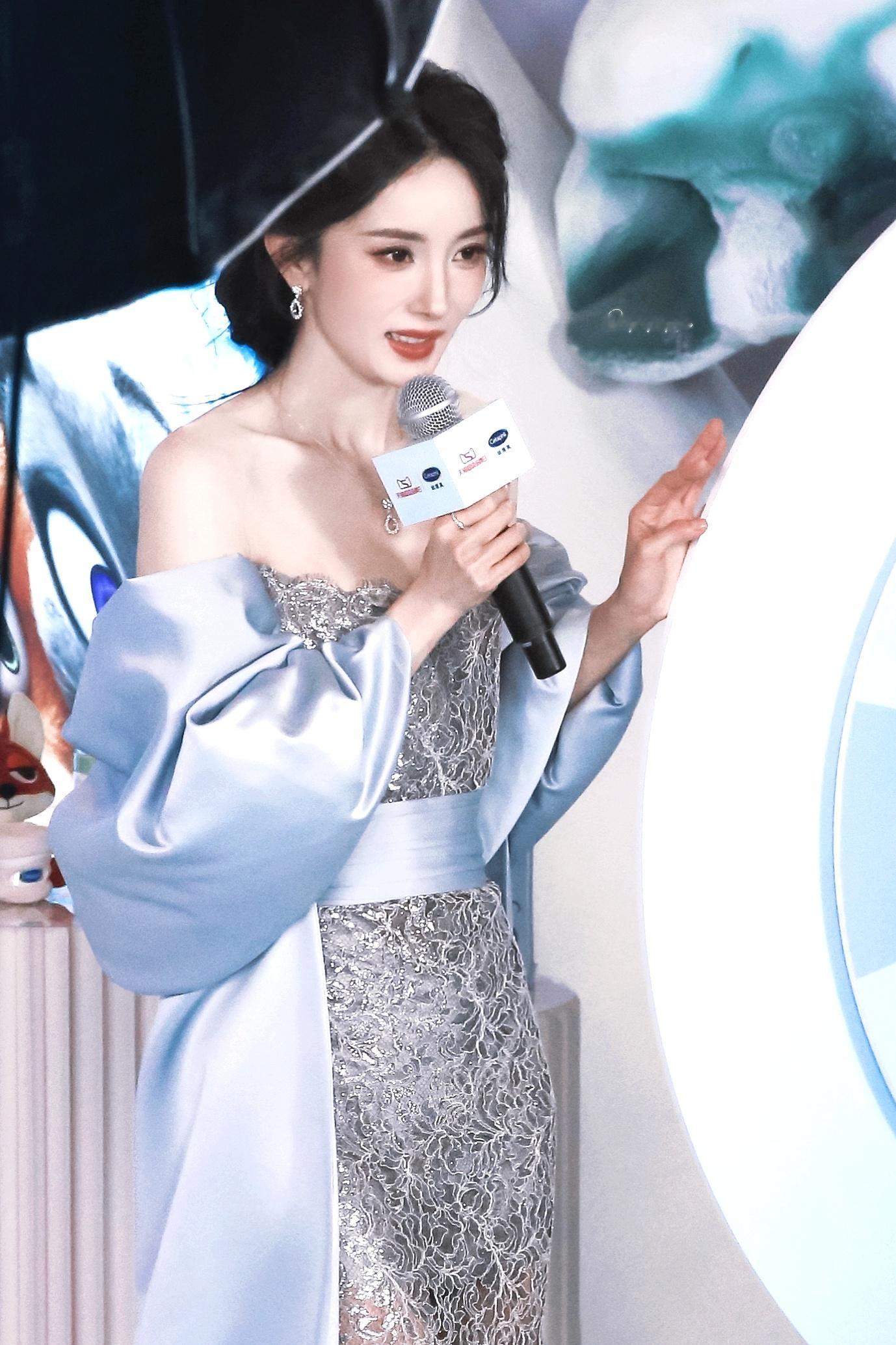 251204 上海 丝塔芙 “我期待的不是雪而是有你的冬天” 杨幂蓝色镂空裙