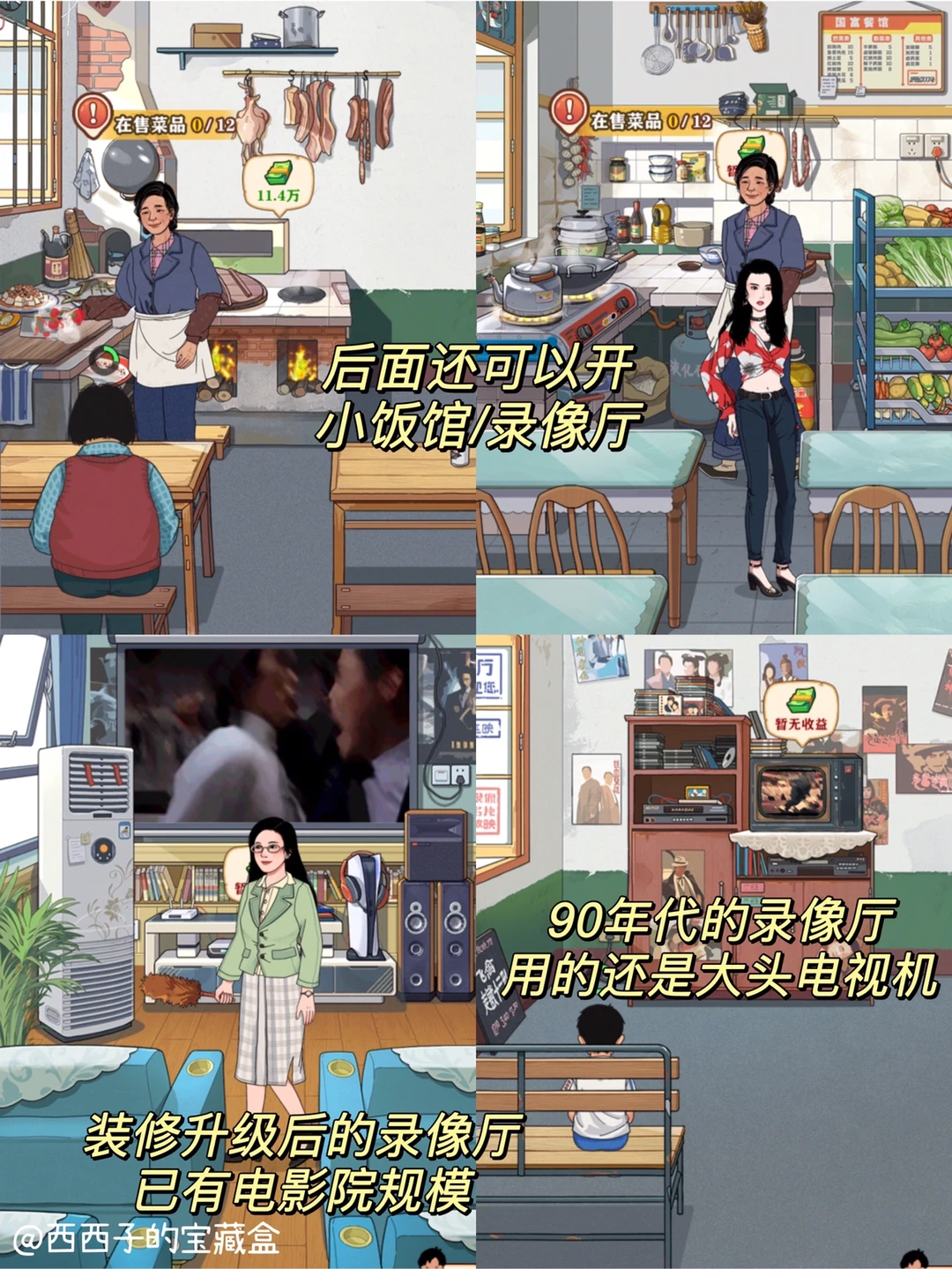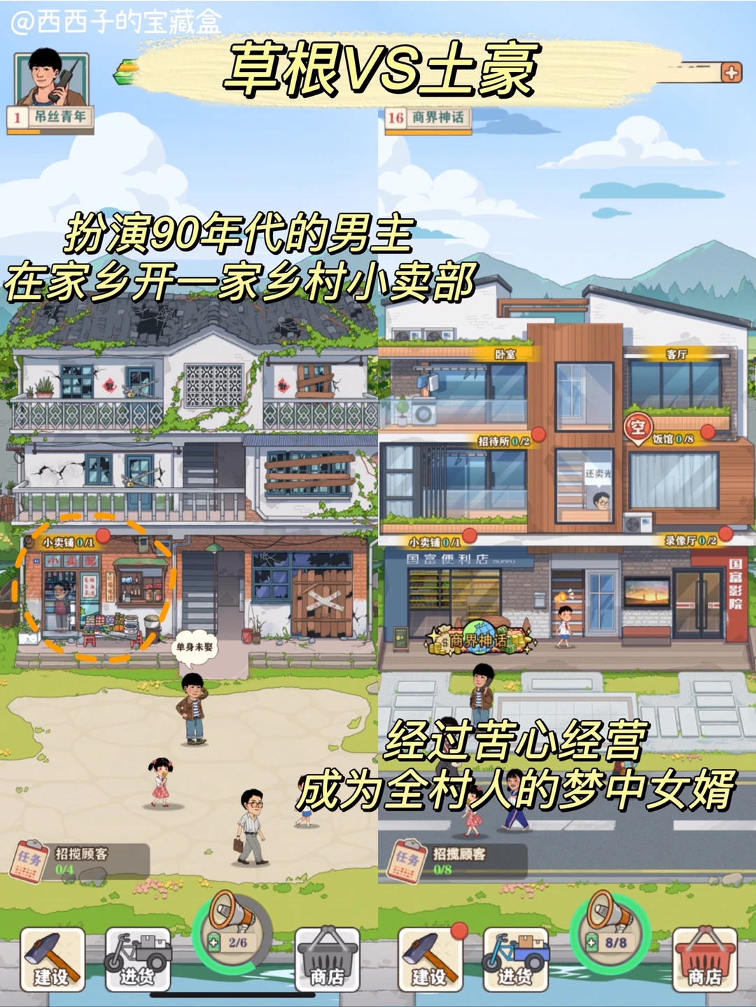 我们需要给小卖部进货、🍭上货、和补货,🤹解决小卖部没有顾客上门等问题,模拟一家小卖部的经营方式,研发小饭馆的🥗菜谱,上线录像厅的影片,🛋️提升小宾馆的家具装修等…