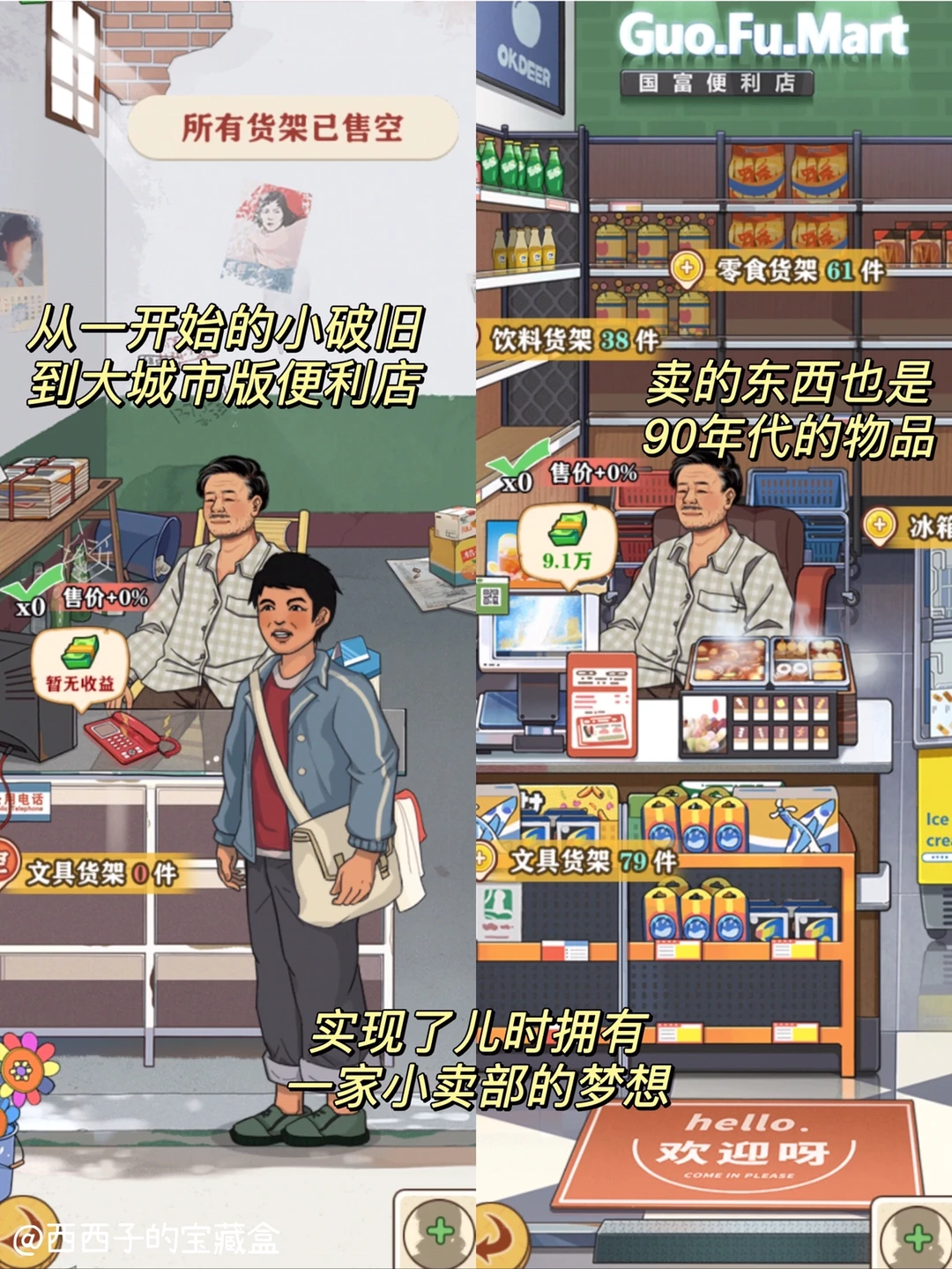 因为小时候的我们,总会觉得那里有吃不完的零食,喝不完的🥤汽水,并且还会很憧憬能拥有一家属于自己的小卖部,在李国富这款游戏里,❤️也算是实现了儿时的小卖部梦想啦~
