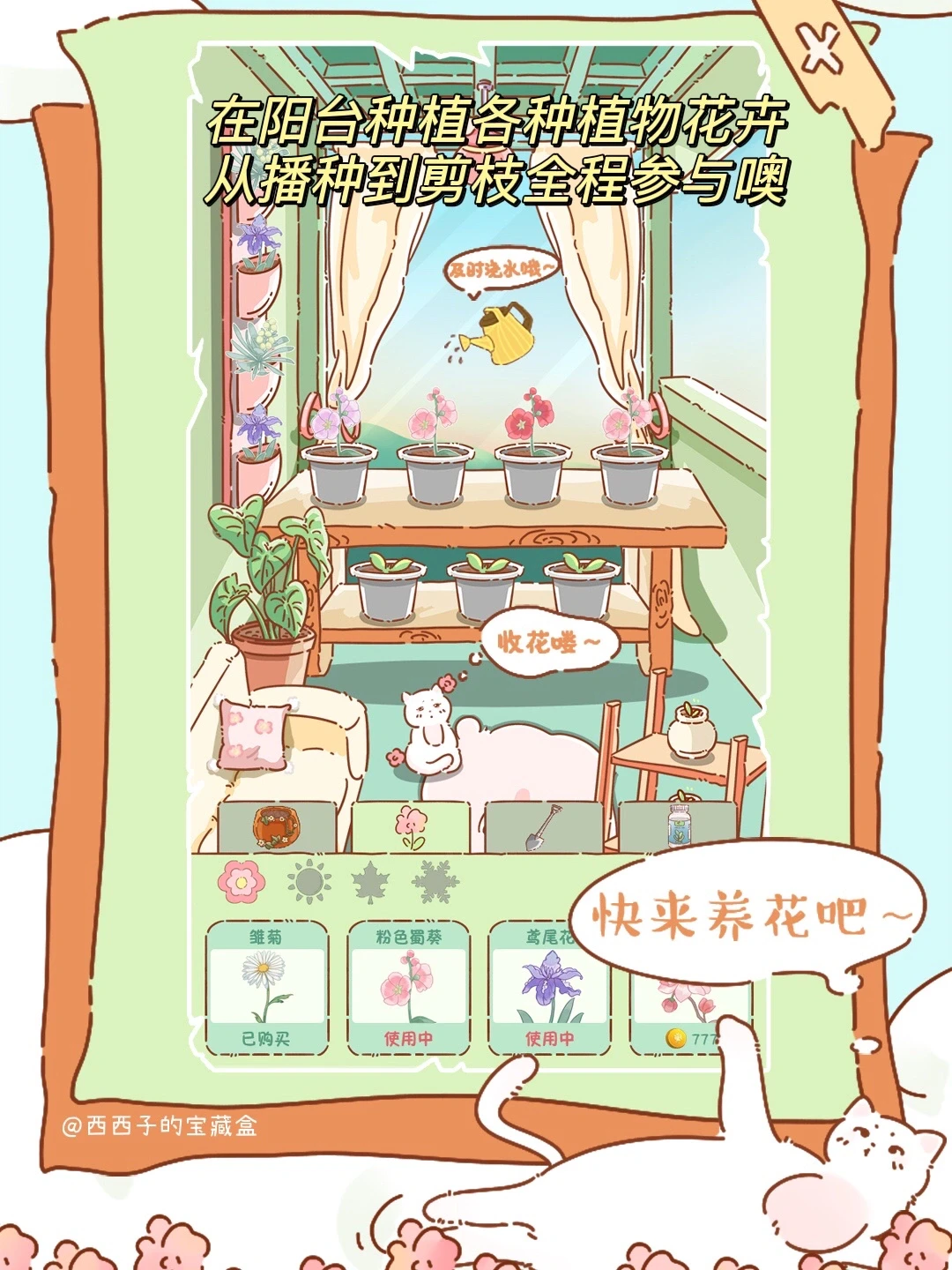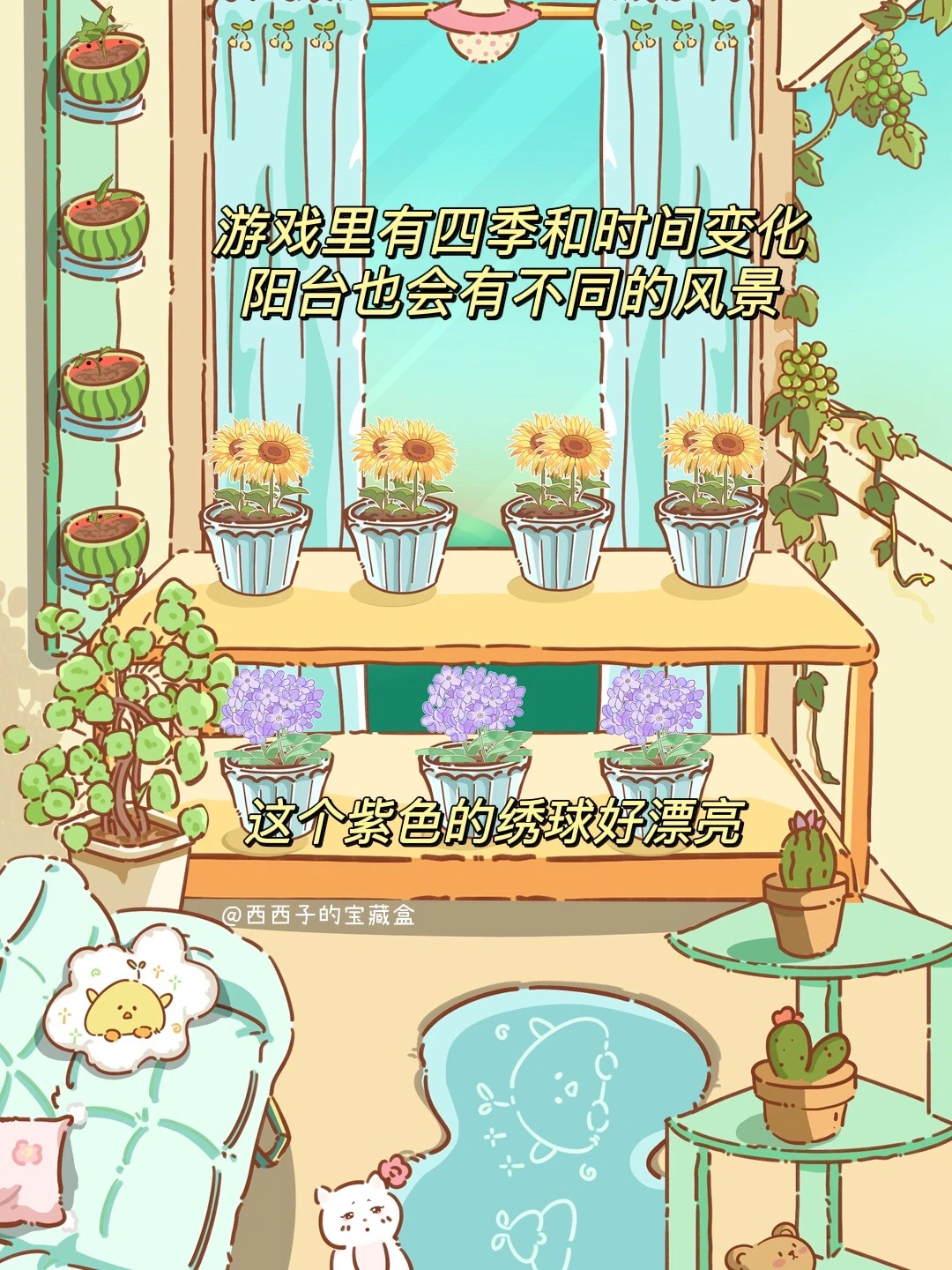 玩家在游戏里将拥有一间有着大阳台的房间,💐房间的阳台可以种植各种鲜花植物,模拟了阳台上种植物的场景,