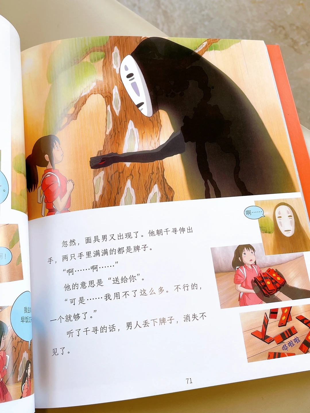 👹绘本重温《千与千寻》,依然被故事中千寻、白龙的坚强、勇敢和善良打动,还有锅炉爷爷、汤屋侍女小玲的嘴硬心软等等。千寻信念坚定,无论多难都要救回父母;白龙不怕牺牲,坚定不移站在千寻这边;锅炉爷爷表面上不理睬千寻,但当别人问起来时毫不犹豫地说千寻是自己的孙女,人性之光在他们身上熠熠生辉