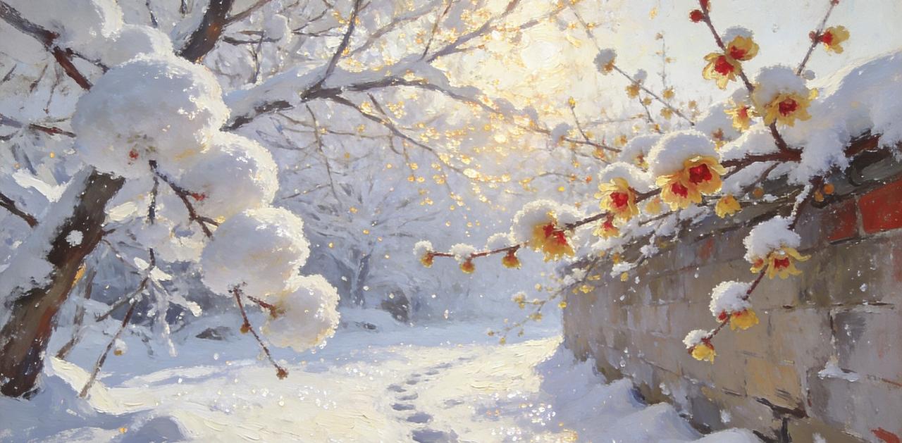 冬日专属的素净浪漫 雪悄然飘落,将天地尽染成纯粹的白。枝头挂满蓬松的雪团,宛如裹上一层糖霜。踩在雪地上,发出咯吱咯吱的声响,留下深浅各异的脚印。 阳光穿过稀疏的枝桠,洒下细碎的金光,雪面闪烁着晶莹的光泽。墙角的腊梅在寒雪中傲然绽放,暗香袅袅,为素白的世界增添一抹亮色。 冷风吹红了鼻尖,却让人感到清醒而惬意。这冬日的静美,隐匿于落雪的枝头、清冽的空气之中,悄然治愈着每一个路过之人。 冬日有诗意 初雪落心间 初雪氛围感 梅雪岁月的雪景