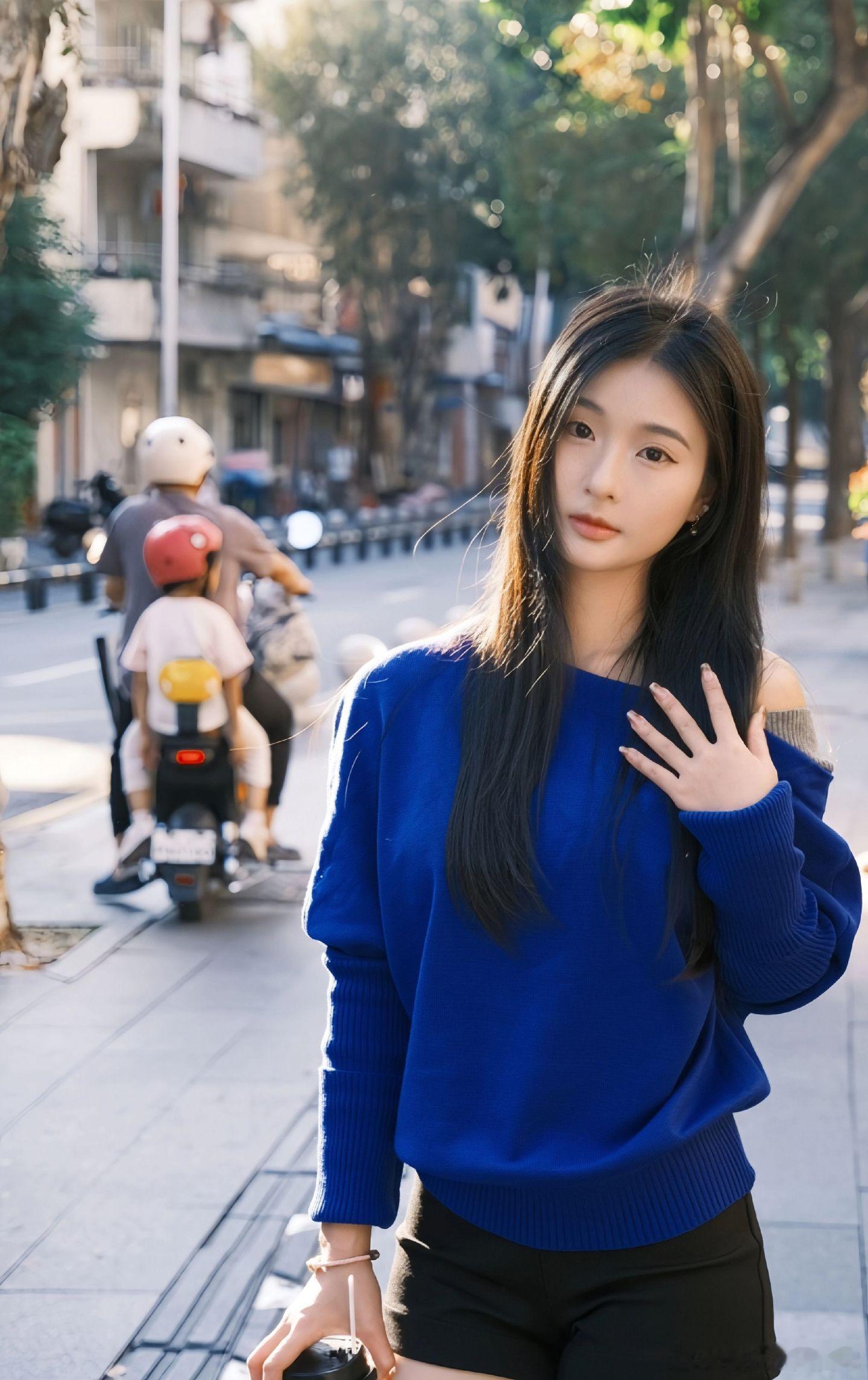 时尚穿搭 毛衣,短裙,黑丝美女人像摄影