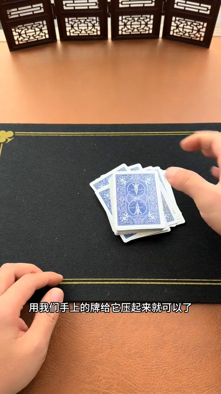 ·最后把这个定位牌放到上方,然后再放到整副牌的下方就可以。