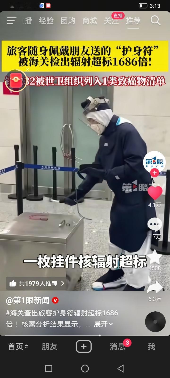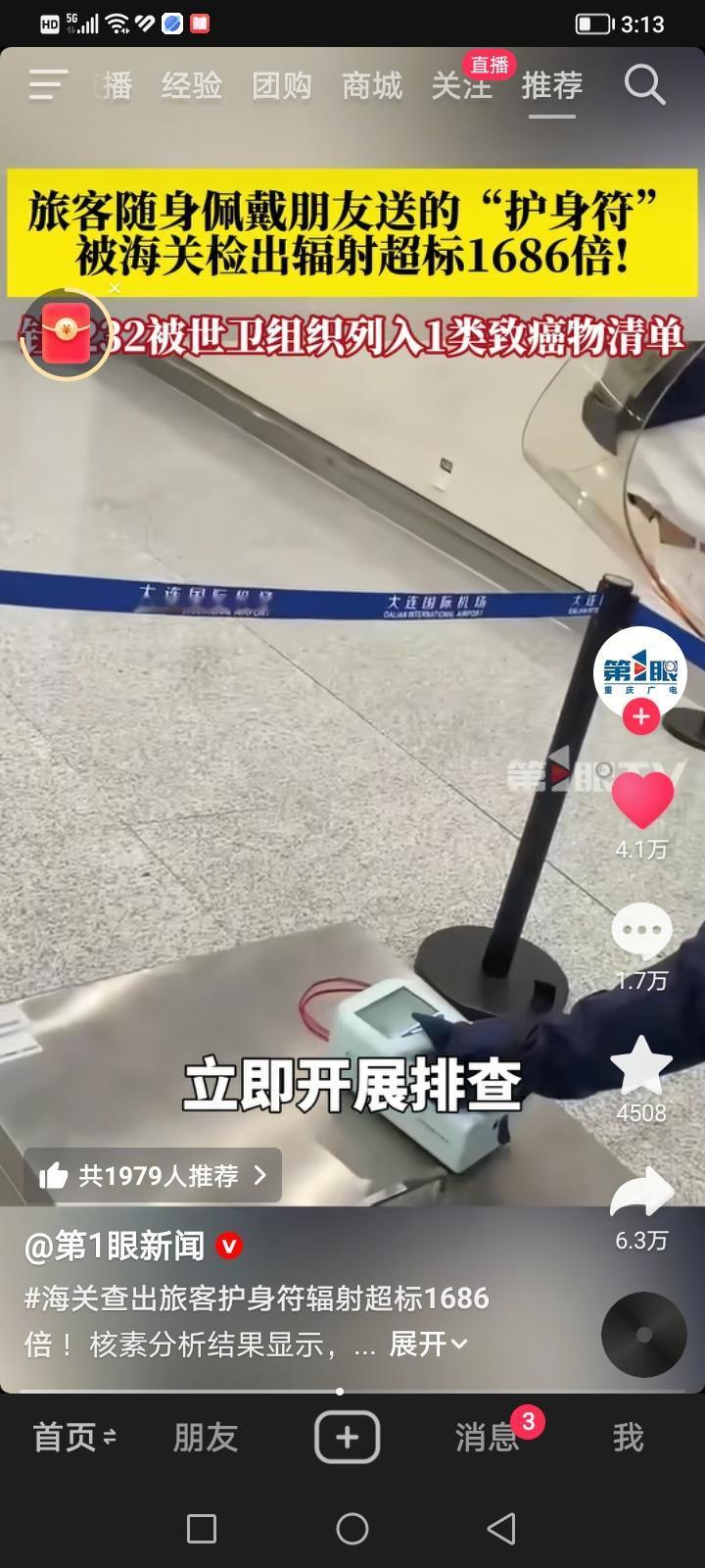 刚看到一个新闻,大连周水子机场海关查获的放射性超标挂件案,旅客佩戴的“护身符”含1类致癌物钍-232,辐射剂量达168.6μSv/h,超现场本底值1686倍 。配件是旅客的一名朋友送给他的,太吓人了,是什么样的朋友?居然送他这种东西,大家以后收朋友饰品之类,还是要留心一点。 钍-232半衰期约140.5亿年,长期接触会损伤DNA、增加癌症风险,还会沉积在骨骼和肝脏终身释放辐射。这类超标物品多以“护身符”“保健石”“能量饰品”等名义流通,海关会依法移交相关部门或责令退运。(图片信息来源:第1眼新闻)放射性铀 钚238 放射性科普 放射性药品 放射性铯137 放射性标识 放射性物料