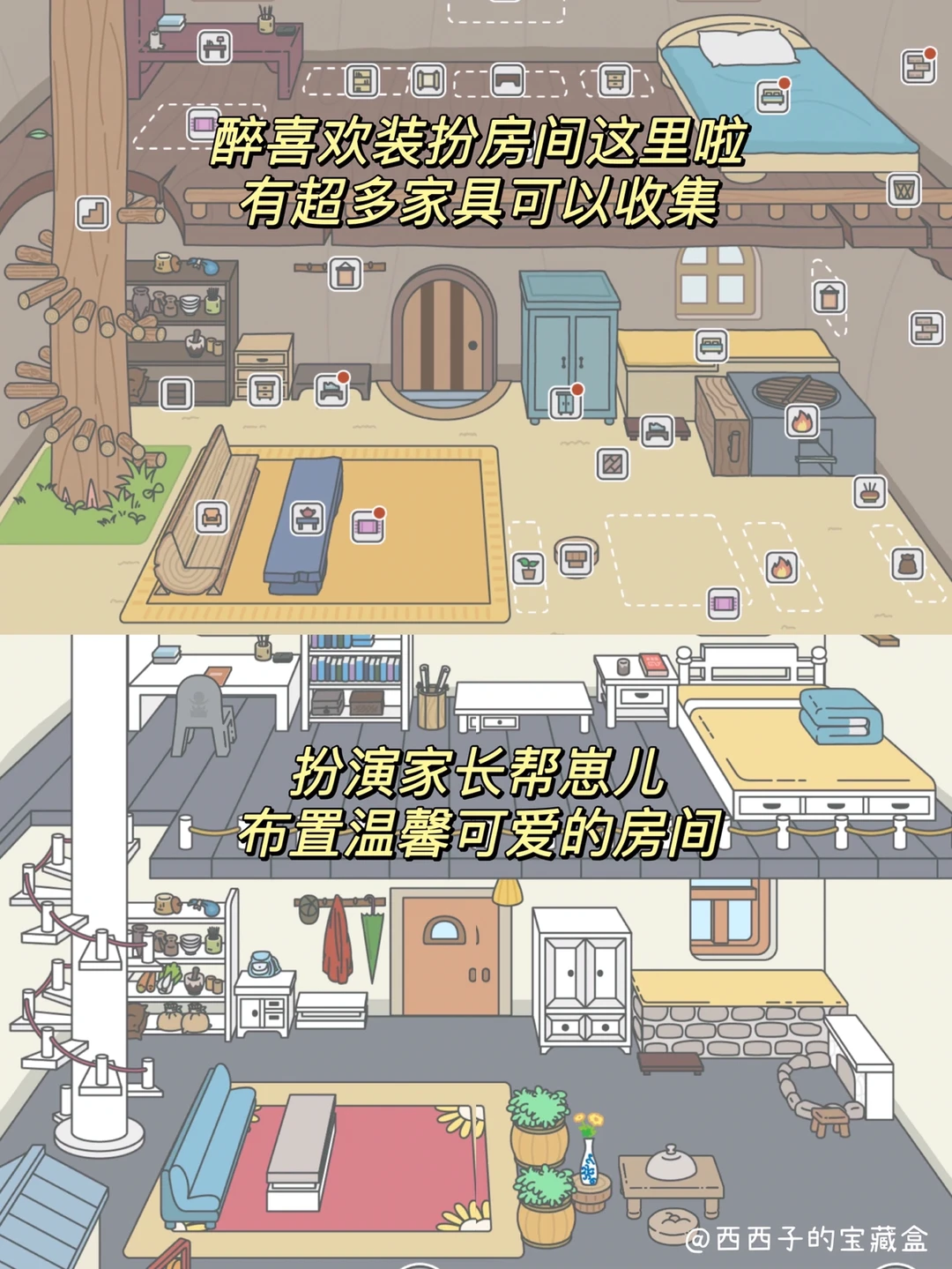 西西子尤其钟爱给崽儿布置🛋️装扮房间的玩法,看着慢慢装扮布置起来的温馨家园,[派对R]我内心特别的满足开心,🎀里面所有家具配饰,看着就很治愈。