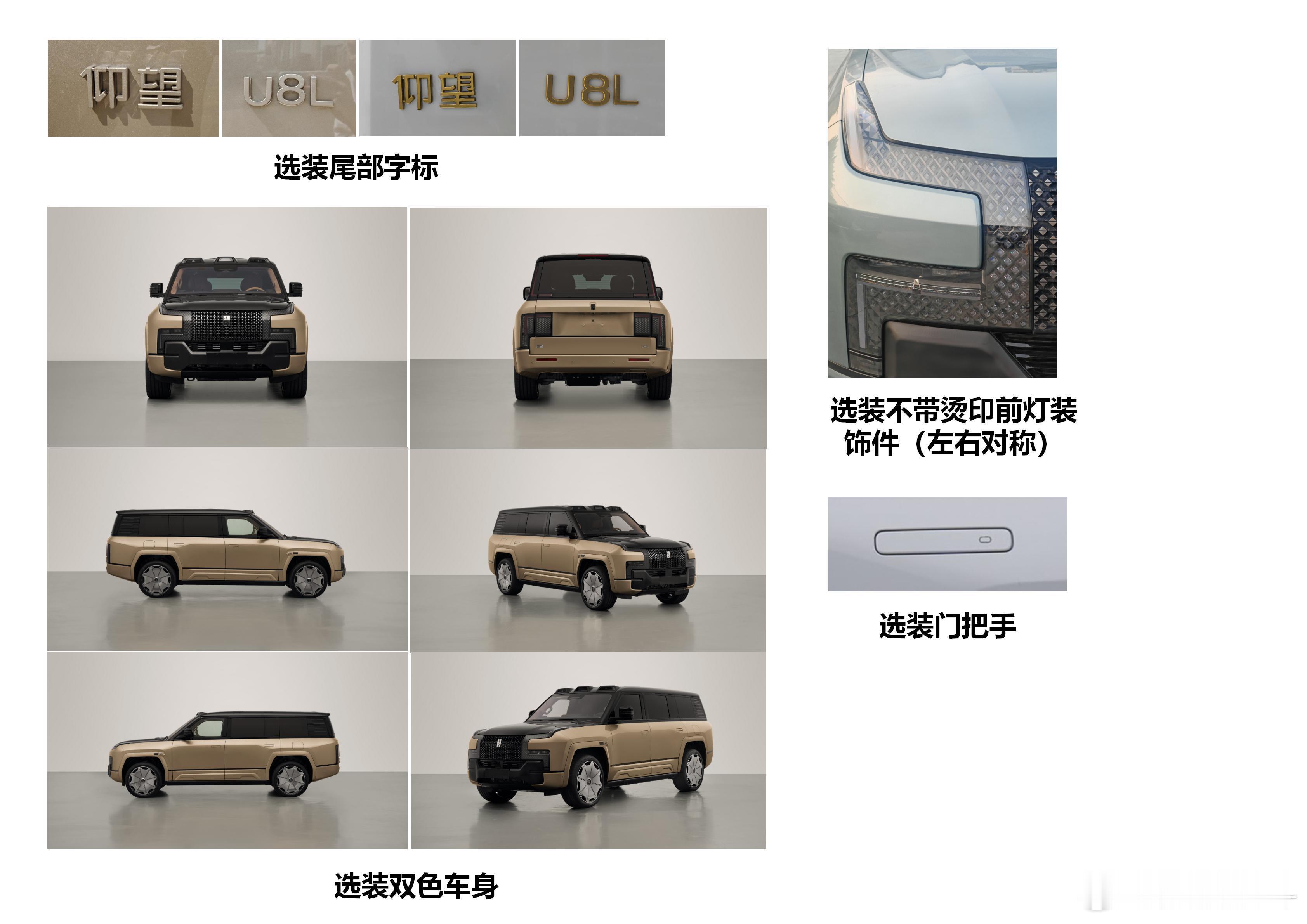 西安土特产之一的仰望U8L长:5400 宽:2049 高:19214台220kW的电机 共880kW除了有金LOGO 还有金腰带仰望U8L仰望汽车