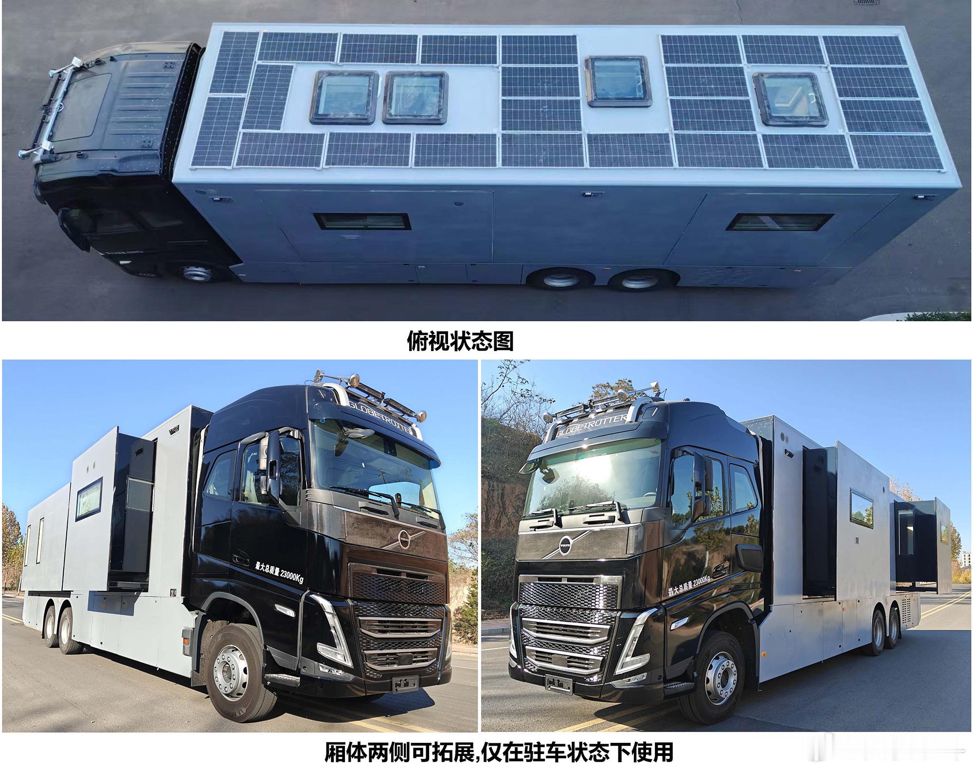 诺马迪森这个房车真的是车中大件长:11900 宽:2500 高:3980总质量(kg):23000沃尔沃卡车的FH500 64R B底盘发动机是沃尔沃动力的D13K500E,排量12777mL箱体两侧可拓展,安装有车头灯具及车身周围安防摄像头辅助照明灯具,车顶有太阳能电池板除了有钱,还需要A1或B2的驾照