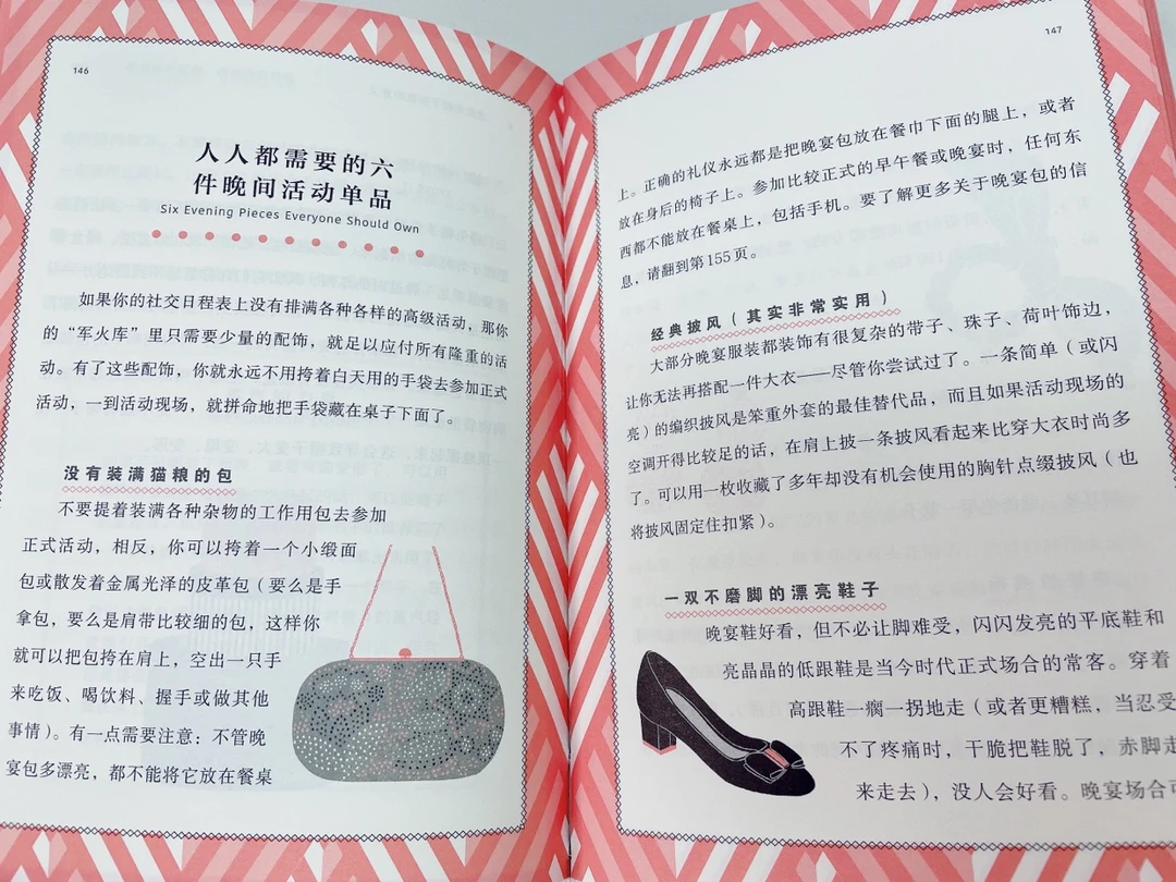 在书中,作者弗里尔分析了不同脸型、不同身材、不同肤色的人应该在配饰、穿搭上如何去改变自己的风格。内容涵盖如何选购、保养耳朵上戴的、脖子上戴的、手上提的、脚上穿的等等配饰,从耳饰、围巾、项链、丝巾等小物件到帽子、宝宝、高跟鞋等等大配饰,适合如通勤、聚会、晚宴等等场景的搭配以及相关的解决方案和技巧,可以说是一本穿搭小白的“穿搭指导丛书