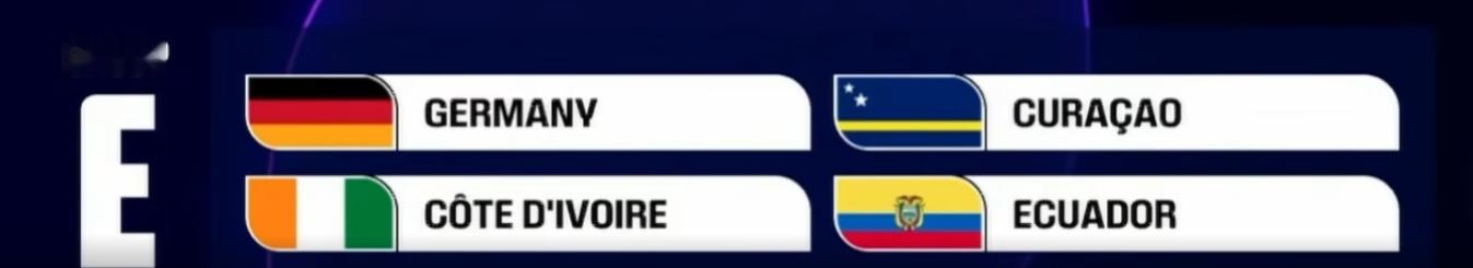 巴西、摩洛哥、苏格兰、海地一组德国、库拉索、科特迪瓦、厄瓜多尔一组世界杯抽签