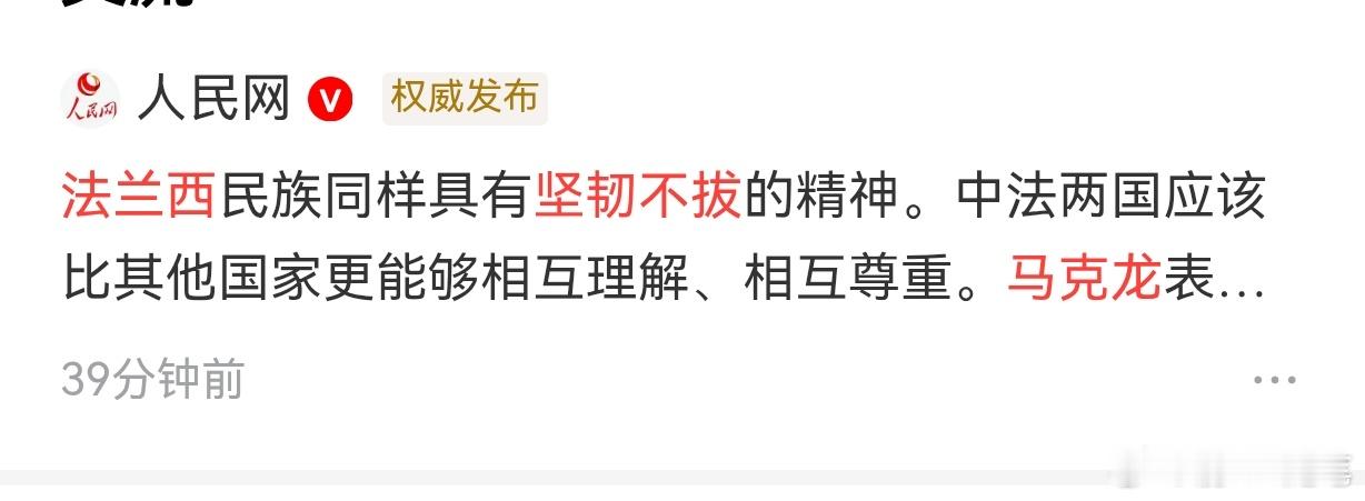 马克龙:法兰西民族同样具有坚韧不拔的精神。