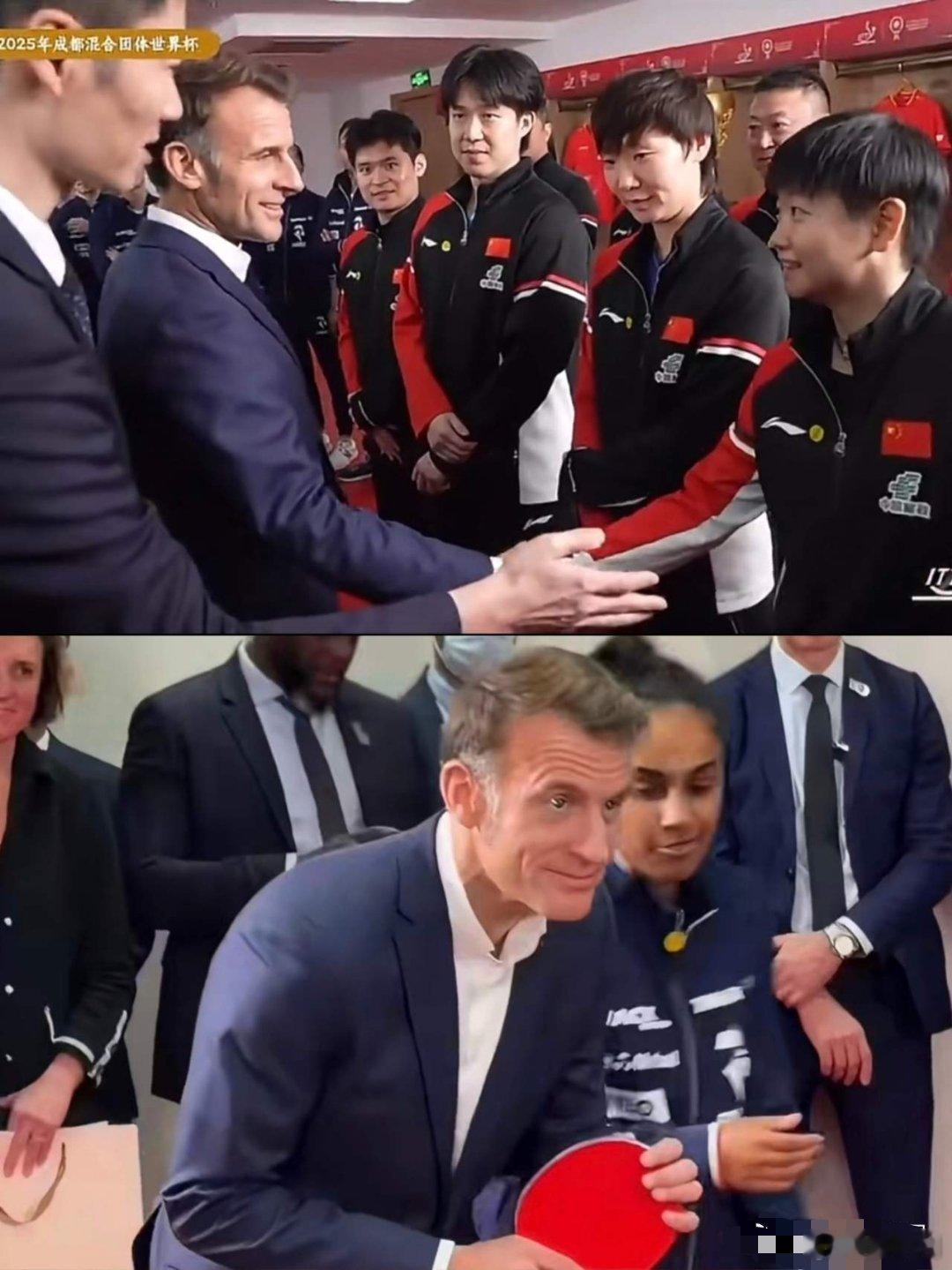 马克龙也喊孙颖莎莎莎看得出来,马克龙也是莎莎的粉丝,来到成都直接喊着莎莎的名字,点名要跟莎莎打球。虽然吃了很多莎莎的发球,你看他高兴的。马克龙握着莎莎的手握了好长时间,都不想松开,看莎莎的眼神也是羡慕呀。他还知道莎莎非常厉害,好几项冠军。看来马克龙也是做足了功课。热点观点