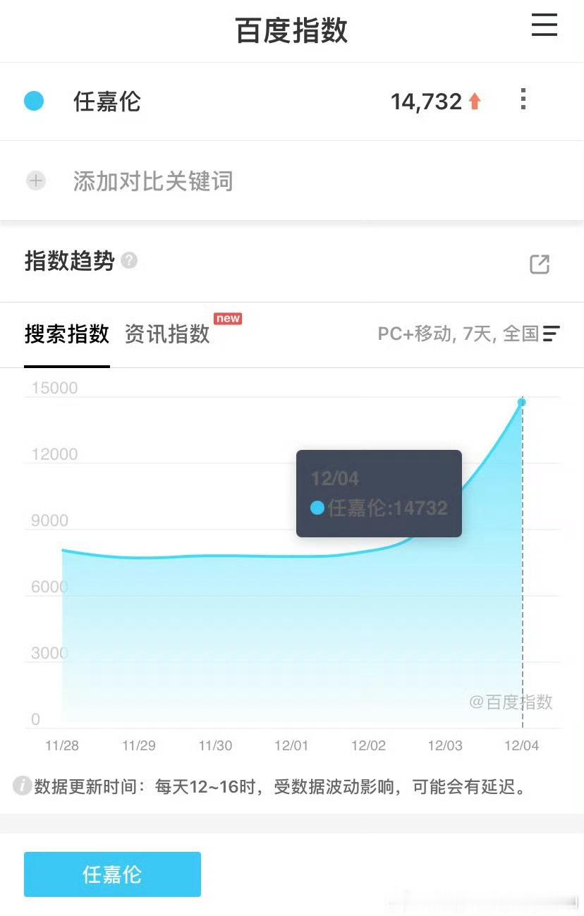 风与潮定档预告发出后百指翻了两倍多直接破万!任嘉伦个人百指也大幅度增长,而且分城