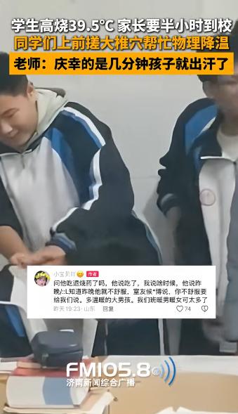 看哭了!山东,一男生在教室突然高烧39.5度,家长半小时才能到校,没想到,同学疯狂给他搓大椎穴发汗退热,这一幕将老师感动得泪流满面! 这事发生在山东一所中学,那天刚降温,零下的天气里,校园里却满是学生上课的喧闹声,透着股活力。 李同学(化名)坐在教室里听课,一开始还安安静静的,没一会儿突然脸色发白,额头冒起汗,身体轻轻抖了起来,任课老师很快发现不对劲,走过去一摸他的额头,手都差点缩回来,烫得厉害,一看就知道高烧,至少三十九度以上。 老师赶紧让他跟家长请假,还把他扶到教室旁的休息区坐着,打电话联系家长,对方说最快也要半小时才能到,这时候李同学体温已经升到 39.5 度,眼睛发红,浑身没力气,额头上的汗不是退烧的汗,是烧得虚弱的冷汗,靠在桌边,意识都有点模糊,看着特别让人心疼。 大家正手忙脚乱不知道该怎么办,班里一个平时特别安静的男生突然站了起来,他走到李同学身边,没说一句话,直接伸手扶住对方的肩膀,然后用力搓揉李同学后颈的大椎穴。 这是常见的退热应急办法,能促进发汗降温,可对一个学生来说,做这个动作不仅要费体力,还得一直坚持、保持专注才行。 男生一点都没敷衍,不是随便揉几下就停,而是用尽全力,一下接一下地搓按,每一下都又重又稳,他根本顾不上自己的手已经搓得发红,也没在意其他同学会不会有误解,满脑子就一个想法,让李同学能快点舒服点。 李同学迷迷糊糊靠在他身上,烧得说不出话,但能清楚感觉到身后同学的手一直没离开,像一股撑着他的力量。 教室里慢慢静了下来,之前还在小声交头接耳的学生,全都停下了动作,有人默默递来纸巾,有人跑去拿水杯,还有人特意去办公室取了备用的退热贴,没人说话,可每个人都在做着力所能及的事,想帮上忙。 几分钟后,李同学大椎穴附近开始冒汗,男生的制服袖子都被汗湿了一大片,老师看着眼前的场景,眼眶一下子就红了,一个孩子发着高烧难受,另一个孩子拼尽全力帮他退热,没有推辞,没有犹豫,不是大人安排的,是自己主动伸出援手,本该吵闹的教室,被这份稚嫩又真挚的善意裹得暖暖的。 十几分钟过去,李同学额头沁出细密的汗珠,身体明显放松下来,也不发抖了,虽然烧还没完全退,但比之前舒服多了,老师赶紧给他贴上退热贴,又让他喝了点温水。 而帮忙搓穴的男生,累得手都抬不起来,整条胳膊酸得发颤,可看到李同学露出一点轻松的表情,他笑了,是那种发自内心放心的笑。 后来老师把这事发到网上,不是想宣传什么,是真的被孩子们纯粹的善意打动了,网友看到后,评论区一下子就热闹起来,有人说,孩子的善良,是成年人最该好好保护的东西。 还有人感叹,这种同学情,比成绩珍贵多了,也有医疗专业人士提醒,学生遇到这种情况还是要及时就医,但也说这样的互助精神特别值得尊重。 信息来源 : 新华网