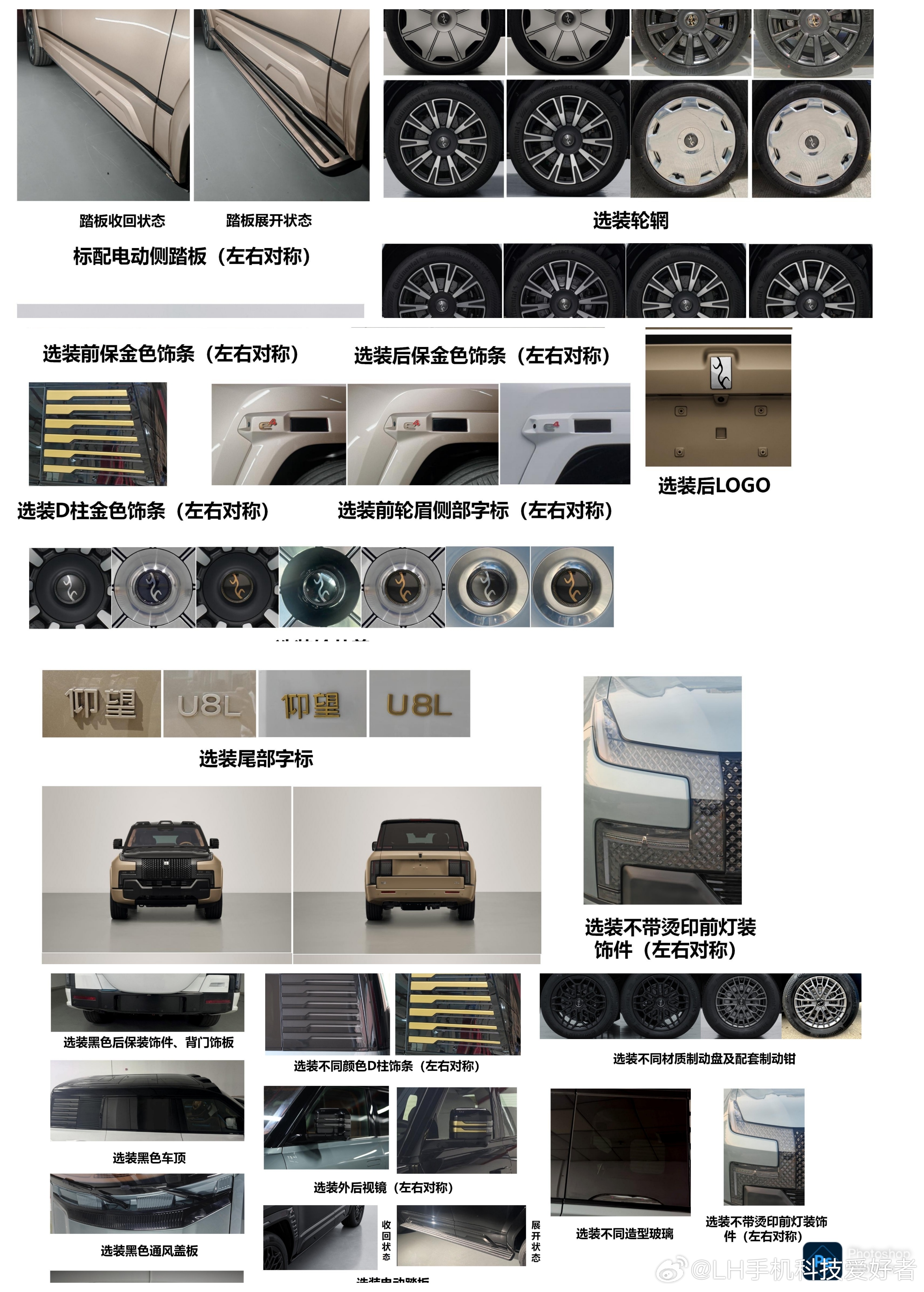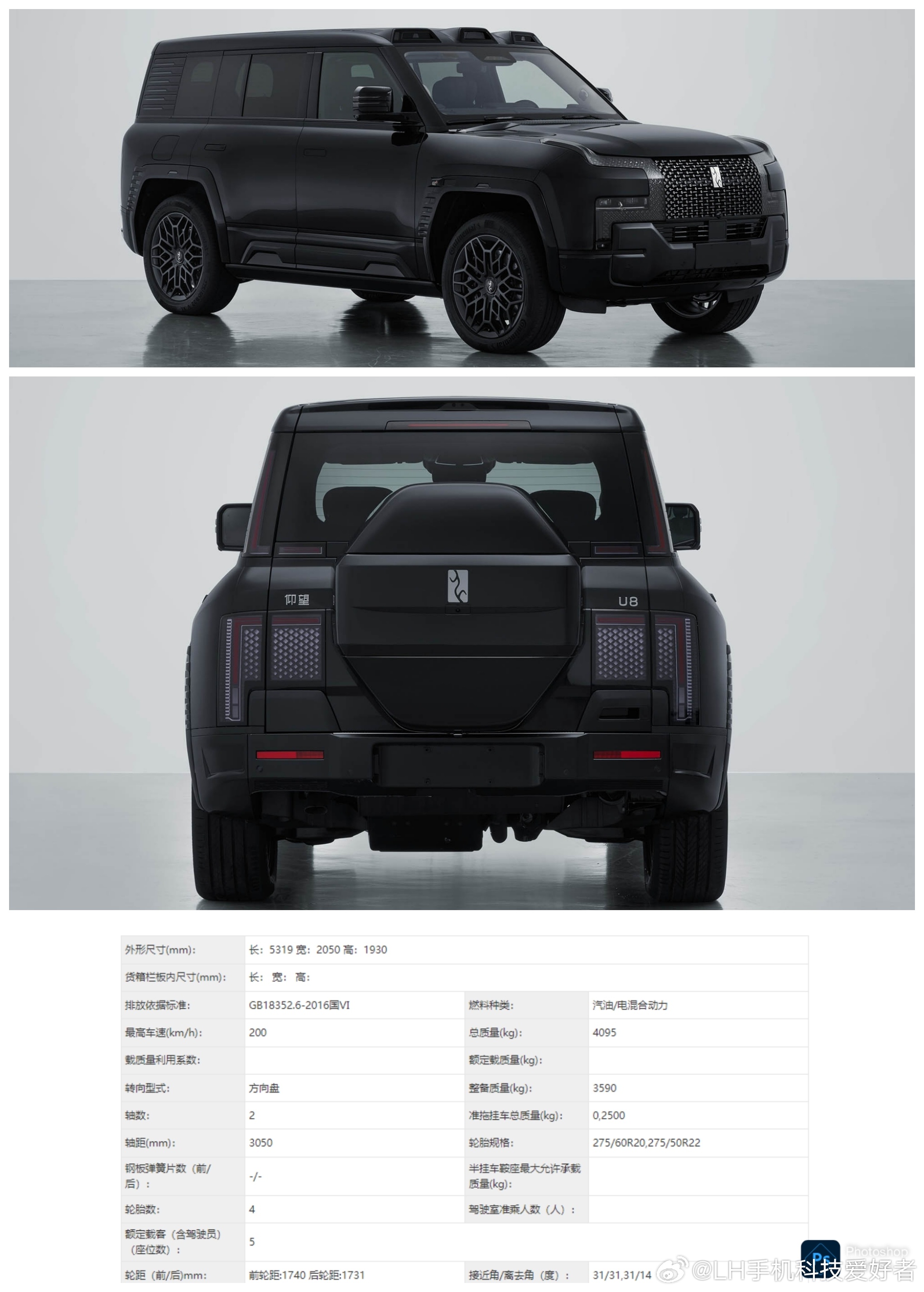 仰望U7、仰望U8L和仰望U8都有申报,整体变化不大,但仰望U7减重了一点。明年有完全体呢仰望U7,估计一百万以上,未来很难看到百万以下的仰望了。