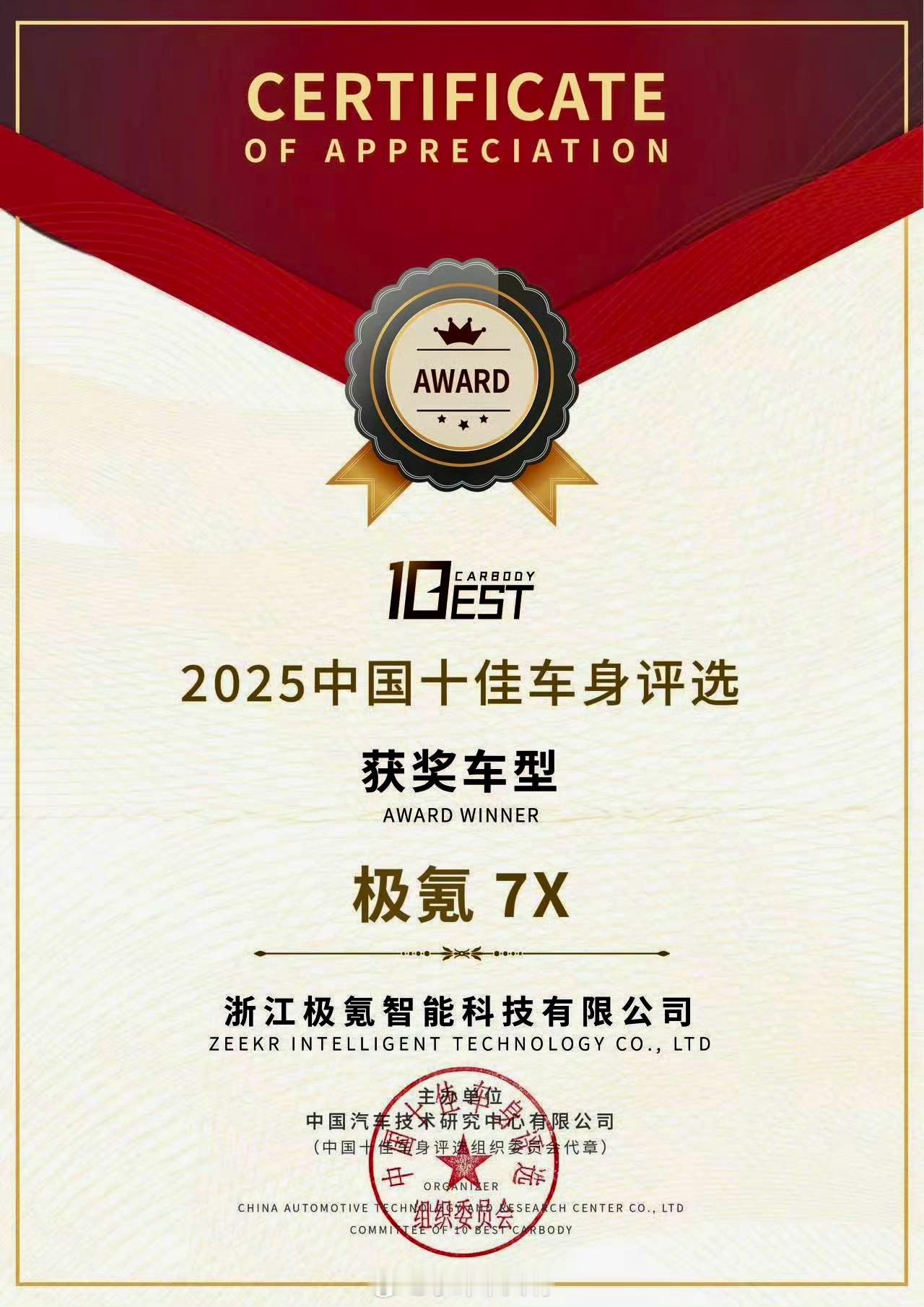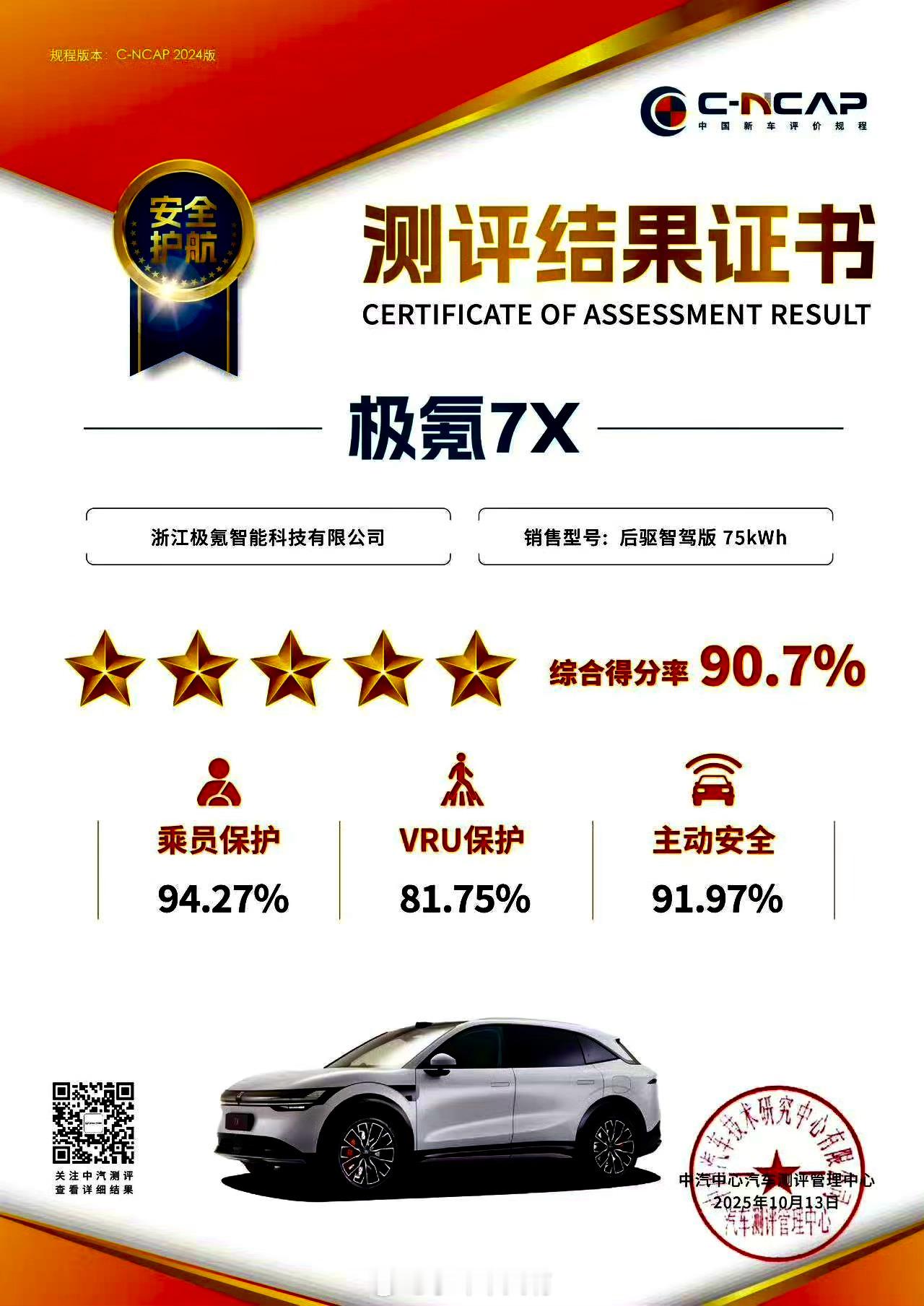 极氪7X又双叒获奖了! 不仅拿到中国C-NCAP五星安全,还通过了欧洲Euro NCAP五星认证——全球两大权威安全测试全拿下。 车身也超硬核,刚被评为2025年中国十佳车身,还拿了最佳材料奖。一句话:安全不靠吹,实打实拿奖说话!