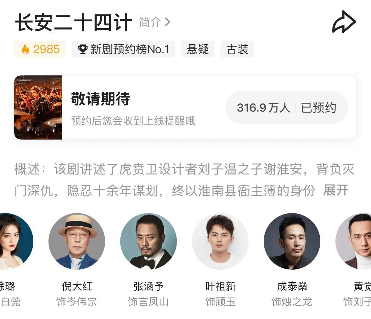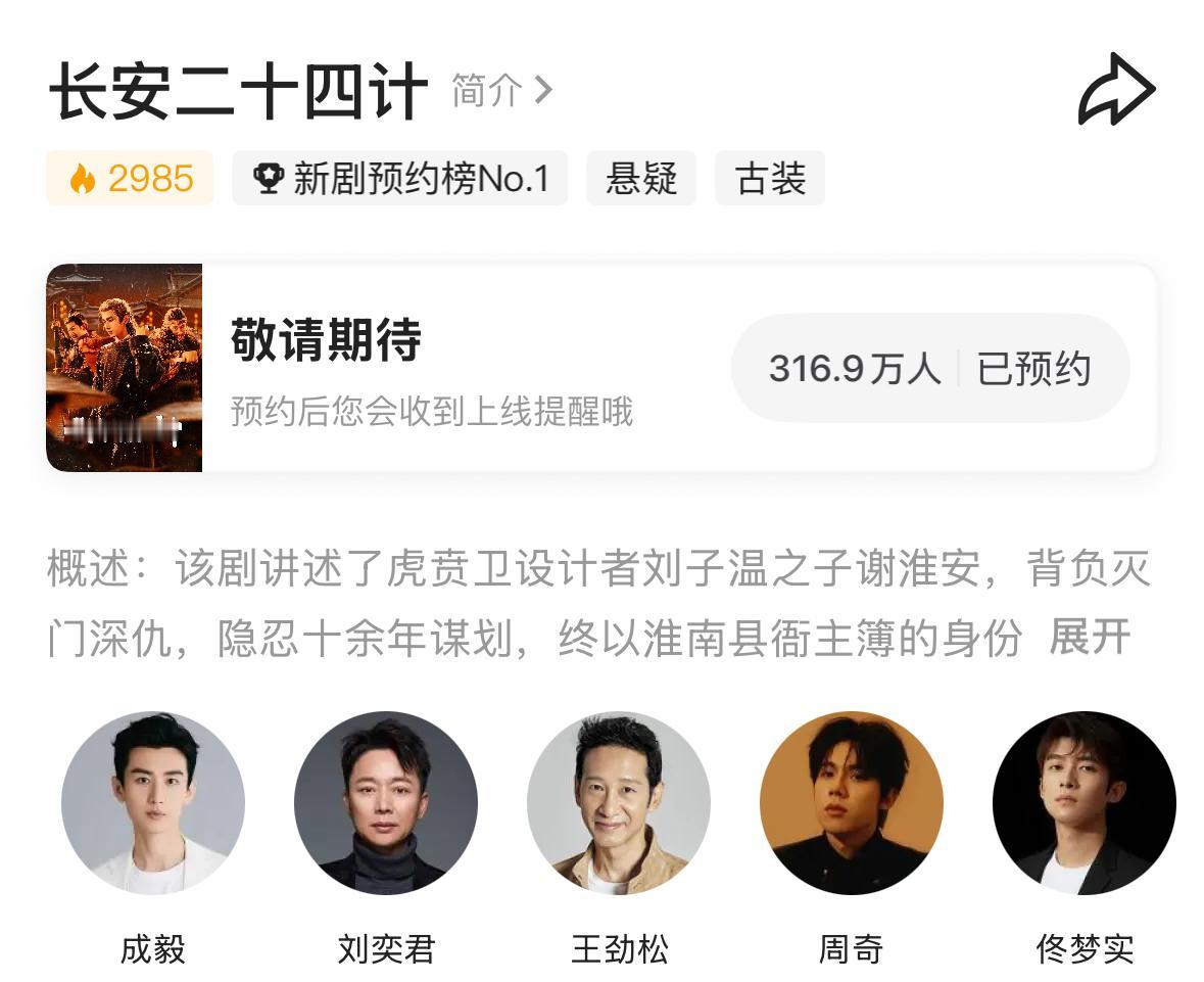 成毅【谢淮安】真的要来了💪 网传1212,希望是真的‼️ 目前是现在最期待的一部剧《长安二十四计》🙏 感觉会是继《莲花楼》之后又一部经典之作,看配角阵容就能感觉到,全是老戏骨,不敢想象会有多好看😋🥰 各平台都在出物料,预约也突破300万,播出日期不像空穴来风,狠狠期待一下👊🥰