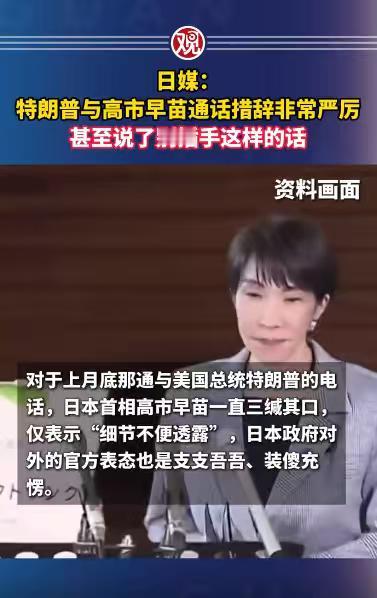措辞很严厉,怪不得高市一直不肯提。特朗普和高市早苗的通话细节被日媒曝光了,据说通话的时候,特朗普的措辞很严厉,甚至说了别插手这样的话。此前,高市曾拒绝透露通话的细节。当时就有很多人分析,高市应该是被特朗普训斥了。此后日本政府对此事的表态也是支支吾吾、装傻充愣。现在日本媒体曝光了一些细节,跟大家猜测的差不多,特朗普对高市很不满,认为她不该插手中国的内政。不过高市至今还没撤回错误言论,可见这个“侍妾”,也没大家想象的那么懦弱。估计她还得听麻生的!