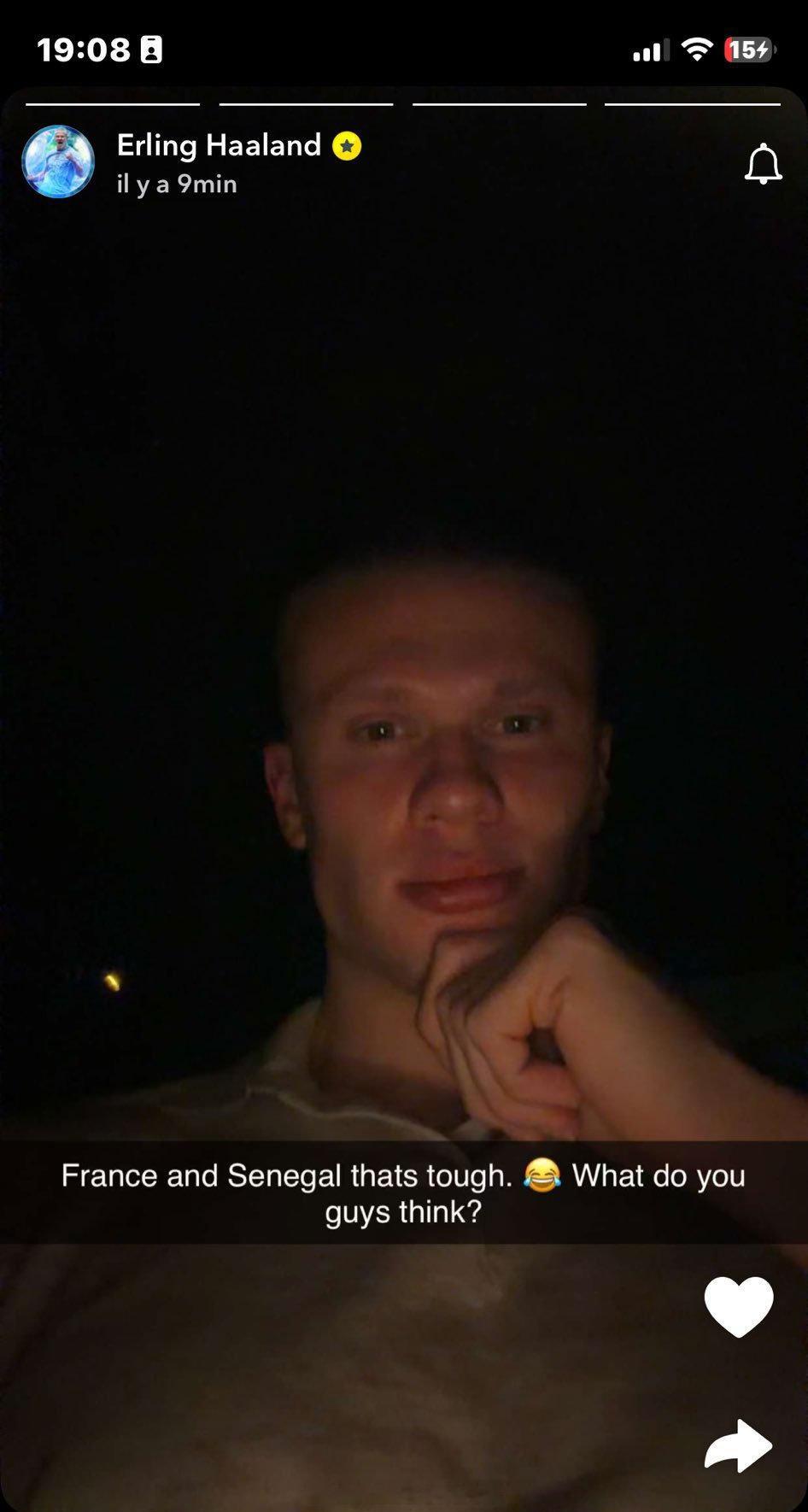 【挪威大战法国】原来哈兰德也有在玩Snapchat,他在上面刚发了一条信息:2026世界杯看点“法国和塞内加尔,难踢,兄弟你们怎么看?”PS:法国、塞内加尔、挪威、跨大洲附加赛2胜者,同分在I组。