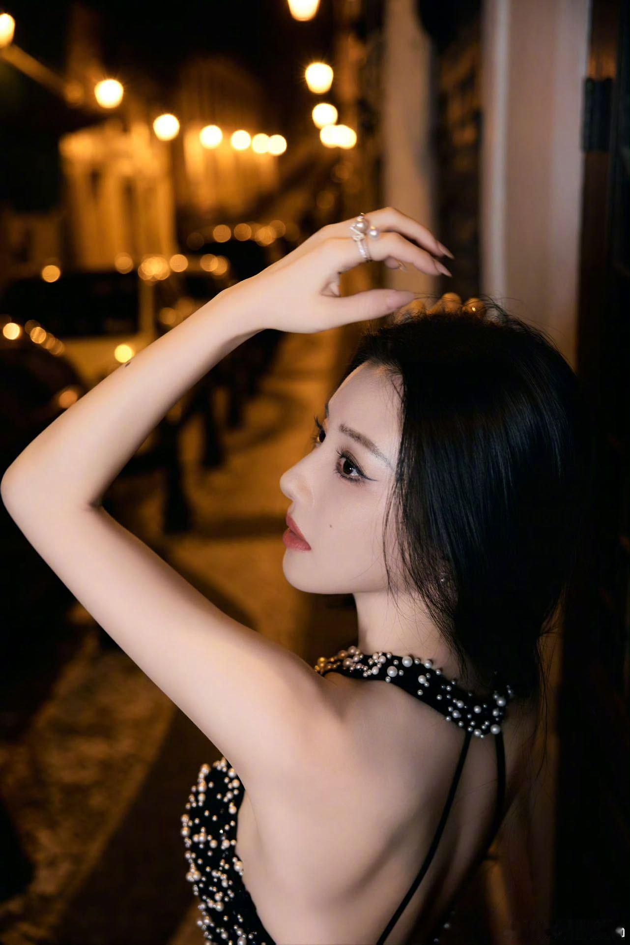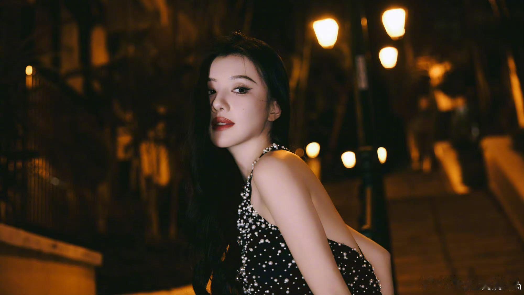 王鹤润居然变成这样了 黑珍珠露背裙造型亮相爱奇艺之夜,美得很轻松~纱裙下的薄背肌线条线太绝了 王鹤润裙子上好多珍珠