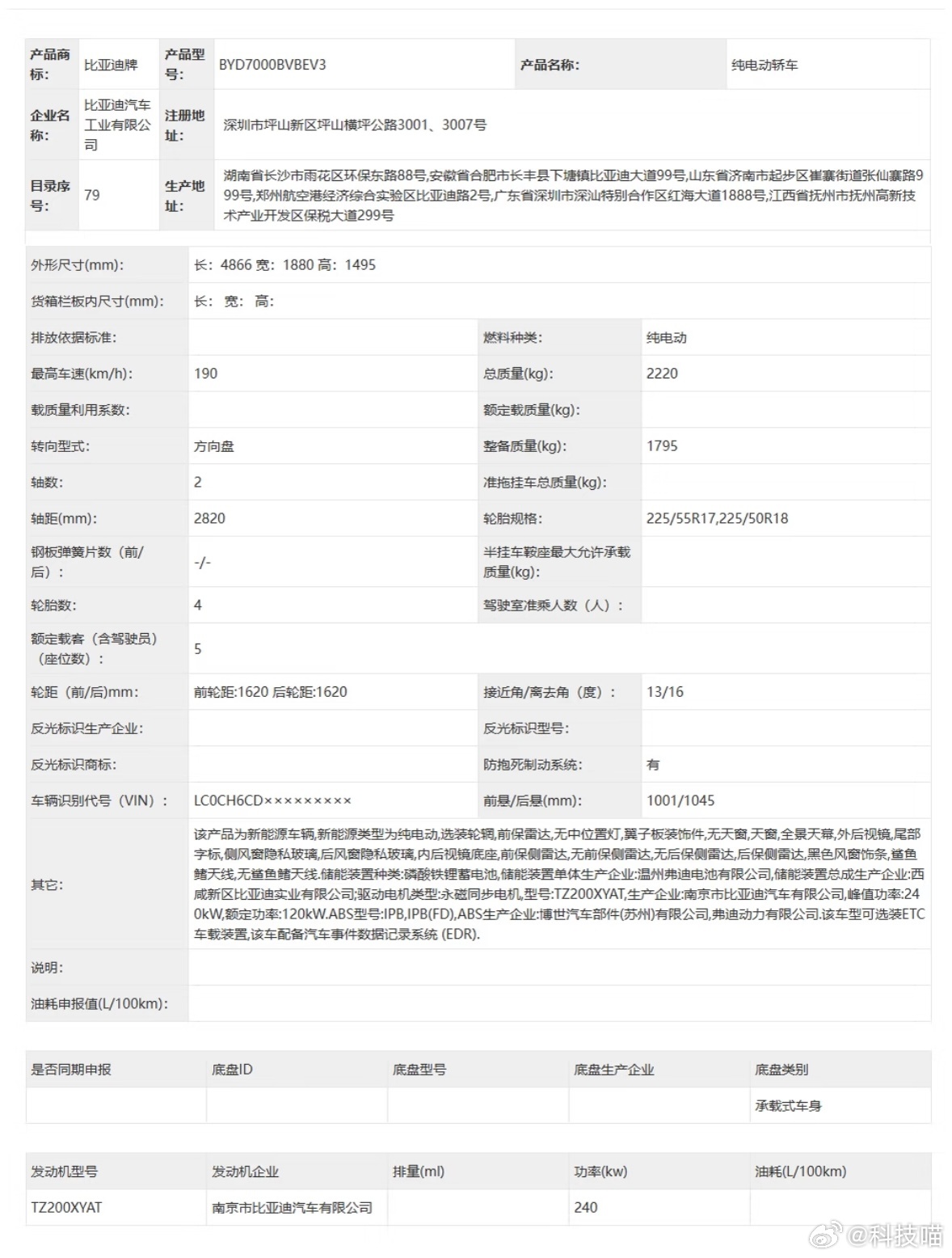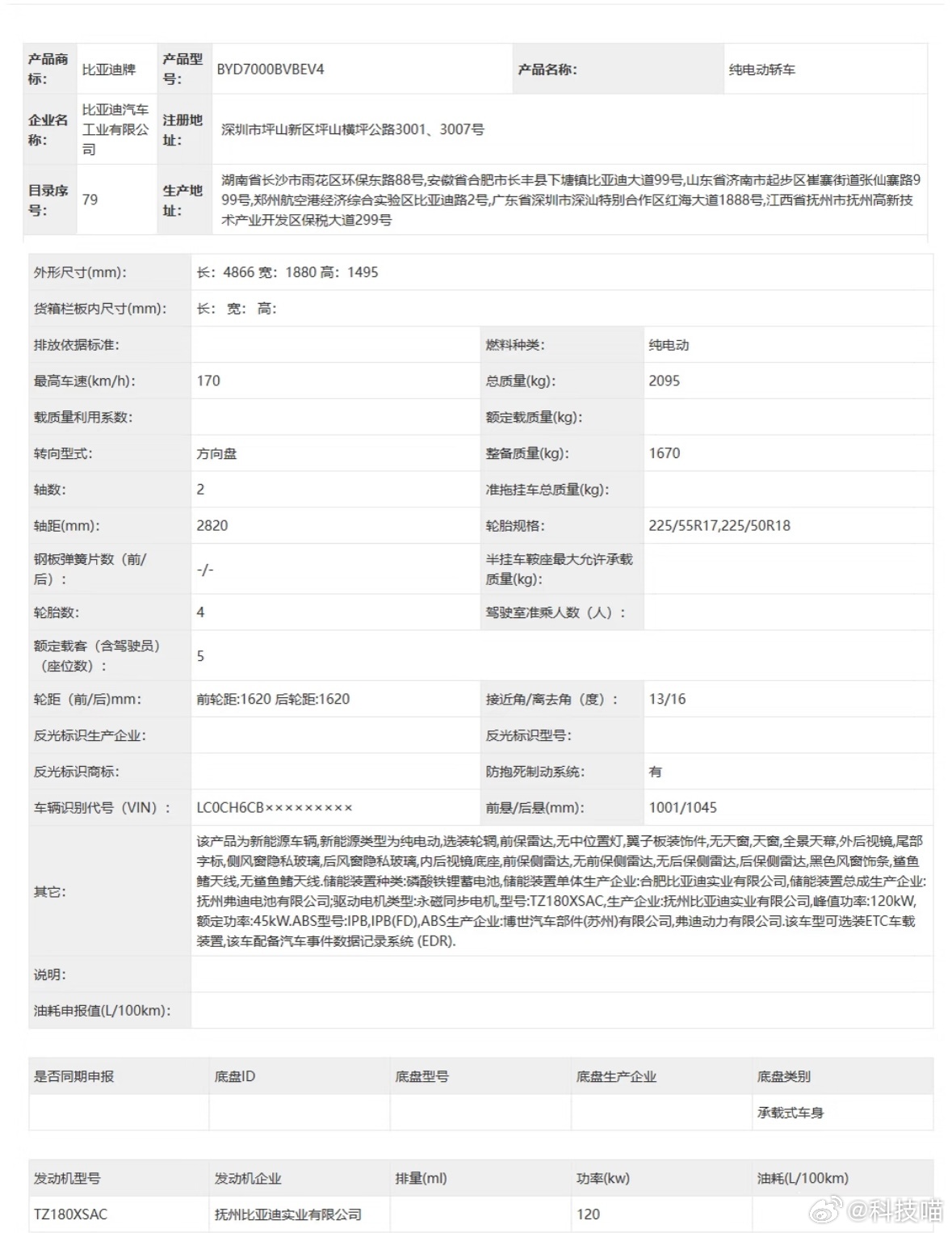 比亚迪秦MAX纯电动轿车4866/1880/1495mm,轴距2820mm低配车型搭载120kW单电机高配车型搭载240kW单电机秦系列车型真的不少:秦、秦Pro、秦Plus、秦L、秦MAX……这车估计价格有惊喜