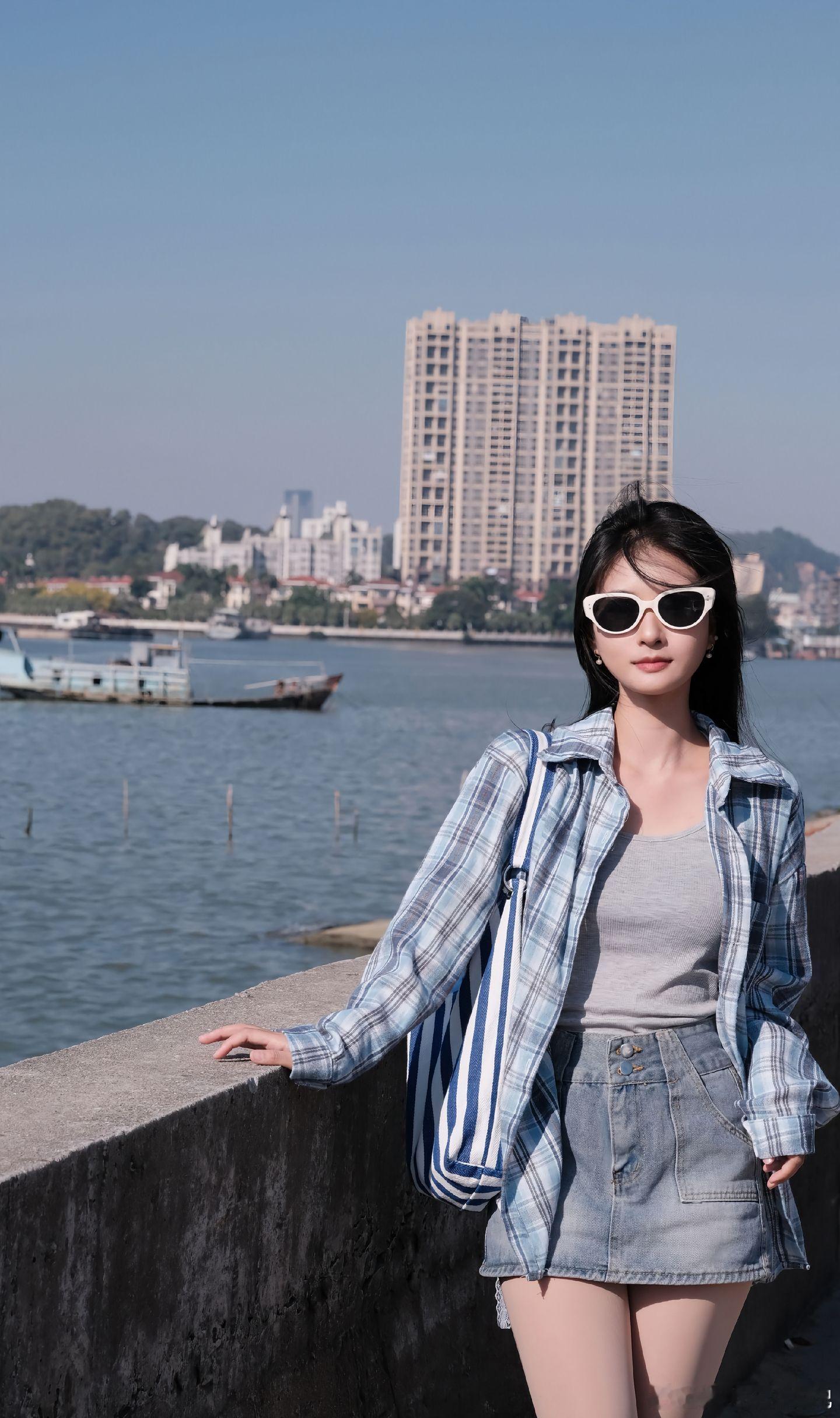 今天穿什么 皮衣,白背心打底,牛仔短裤,黑丝,出发美女绘梦长廊