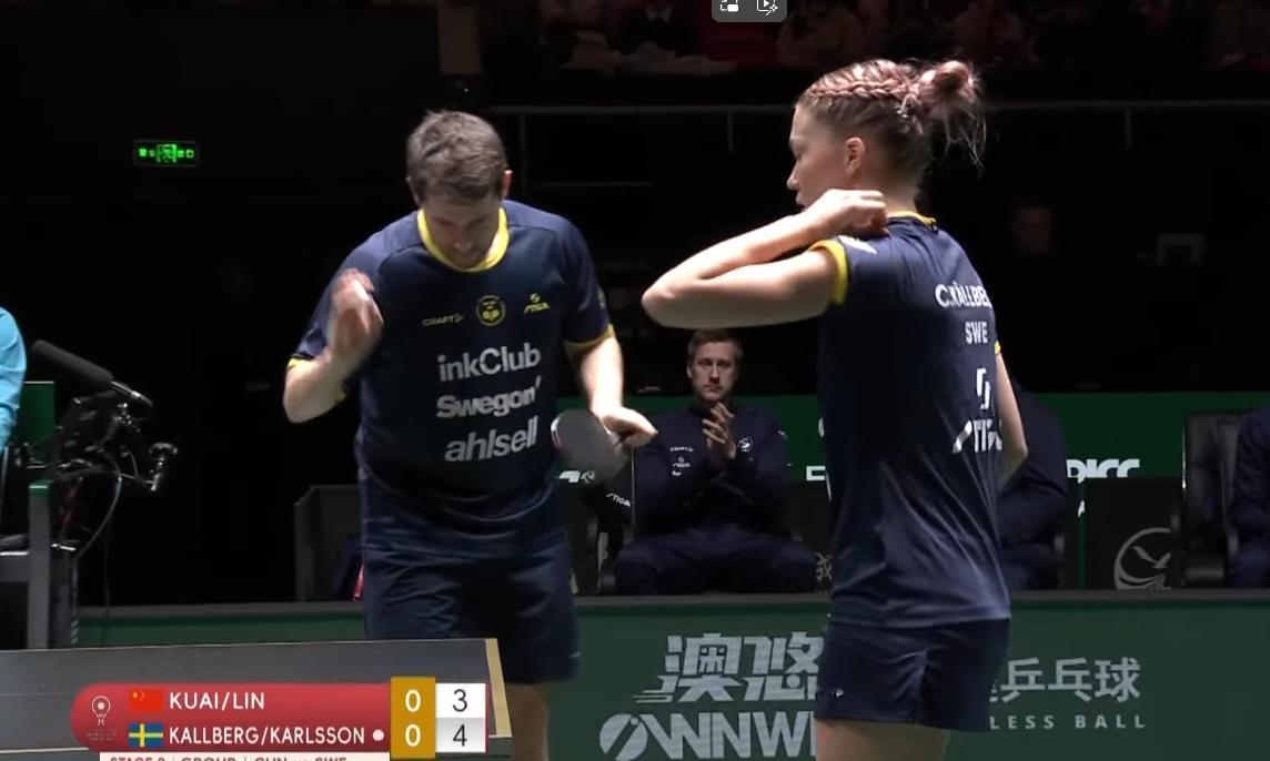 12月6日,太棒了!国乒晋级混团4强后, 莎头开始轮休, 让小将顶起来了。 首场混双由动漫组合迎战瑞典的卡尔森/卡尔伯格 卡尔森/卡尔伯格开局3:0领先, 然后动漫追到了3:3, 并且7:4领先。 卡尔森不愧是老将, 经验丰富, 追到了8:8, 关键球蒯曼和林诗栋非常敢打, 11:9拿下