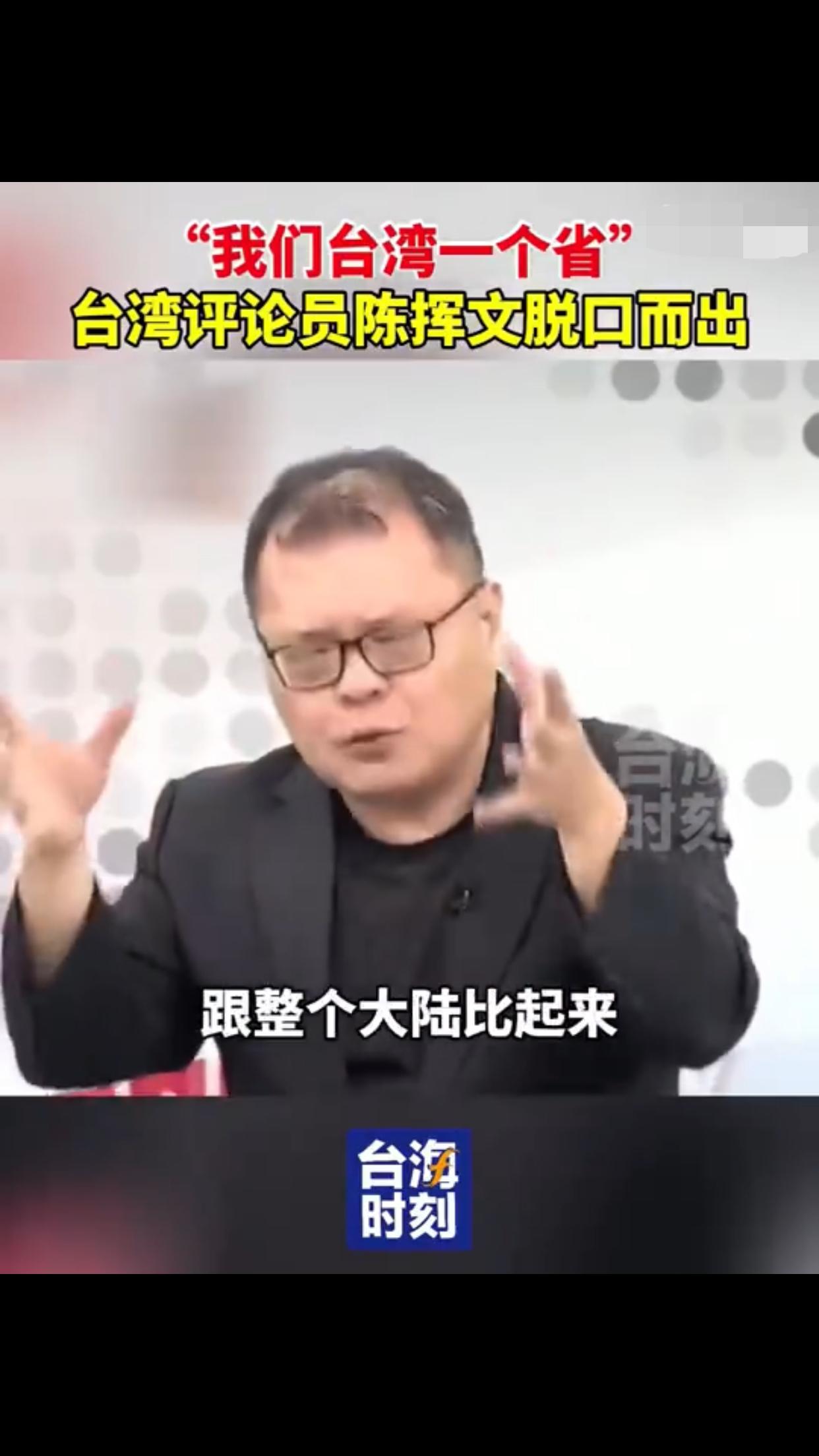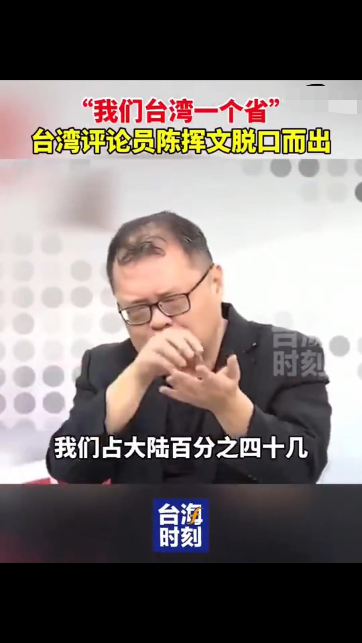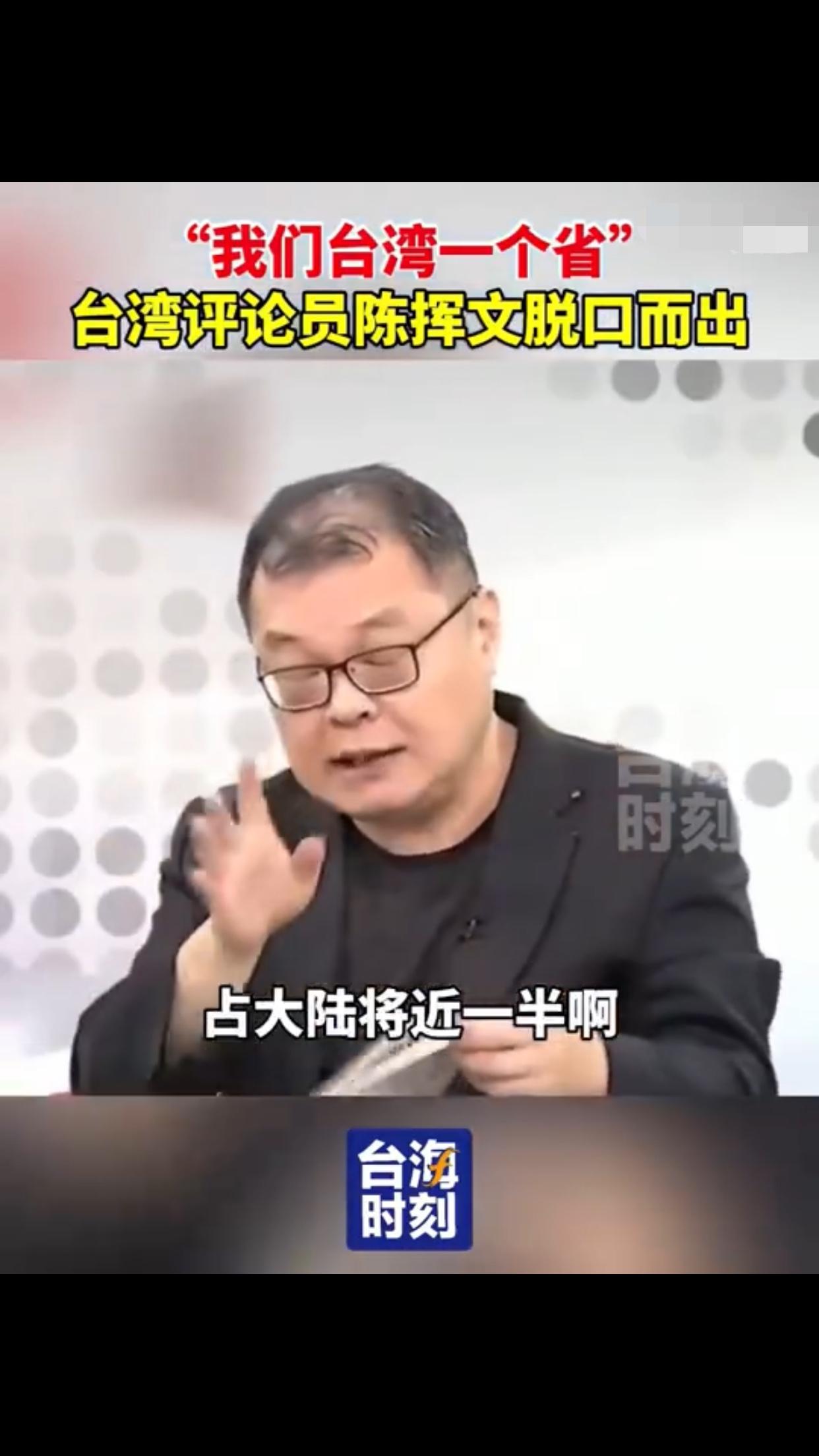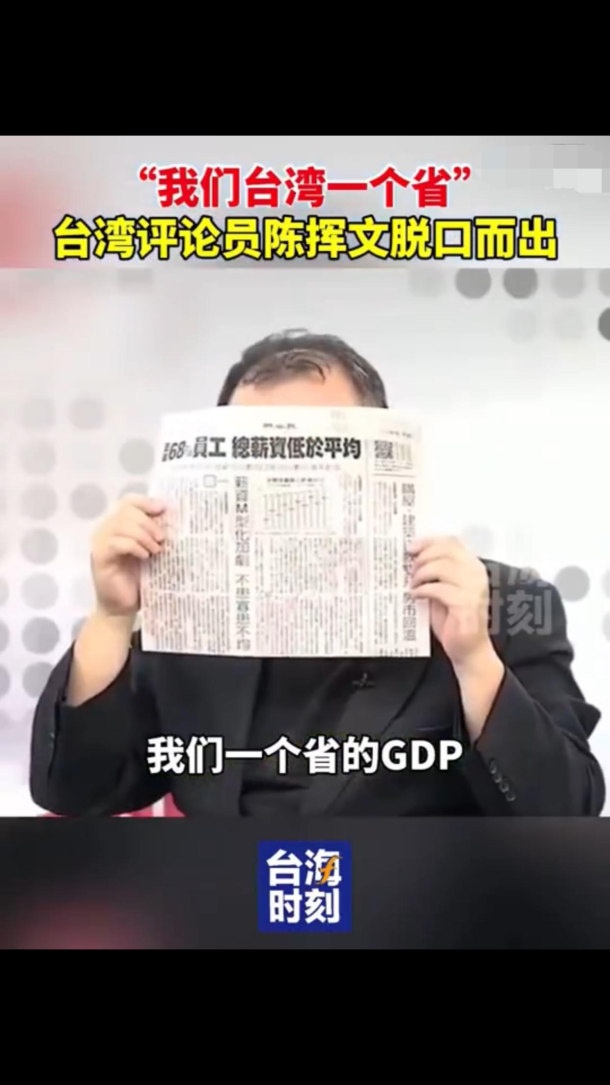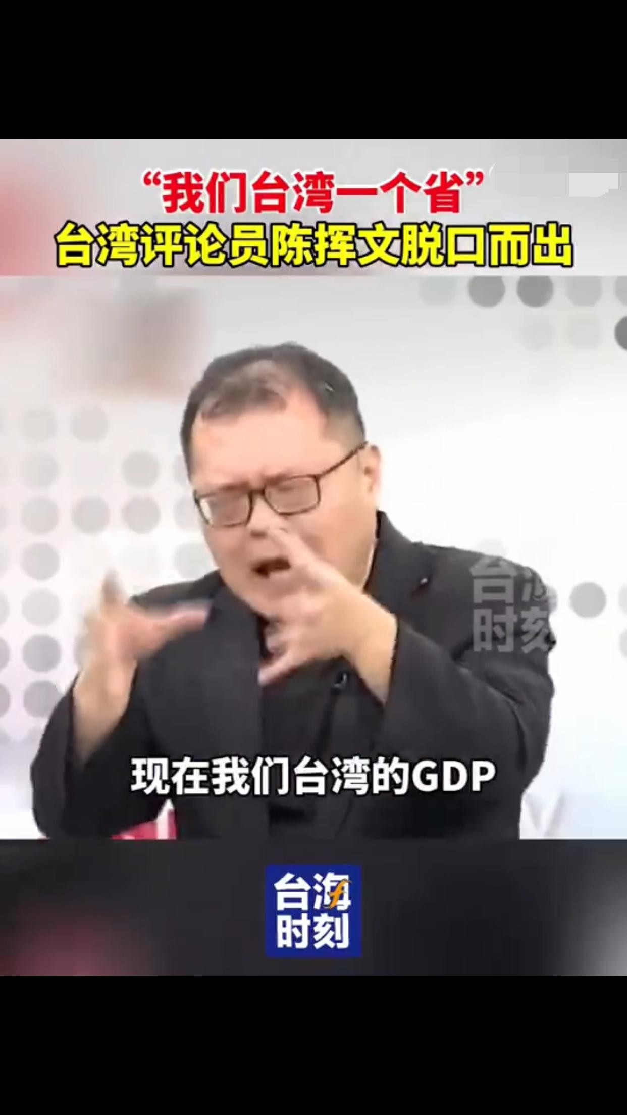 台湾陈挥文不解质问道:“各位,想当年,在蒋经国的年代,我们台湾一个省的GDP占大陆将近一半啊,百分之四十几,那个是当年啊,我还年轻的时候,头发比较多的时候,那个时候,我们占大陆百分之四十几,现在我们台湾的GDP跟整个大陆比起来,不到5%,人家在进步,我们在干嘛?我们在内耗和空转啊!”