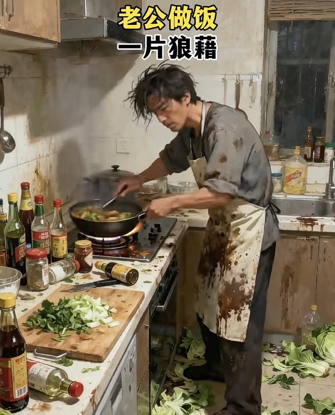 老婆做饭:锅碗瓢盆各归其位,灶台能反光,炒个菜都自带“优雅滤镜”✨ 老公做饭:厨房像刚经历了“食材大逃亡”,围裙是“战绩勋章”,锅铲都在冒火星子🔥 ——论做饭的两种画风,你家是哪款?[皱眉]