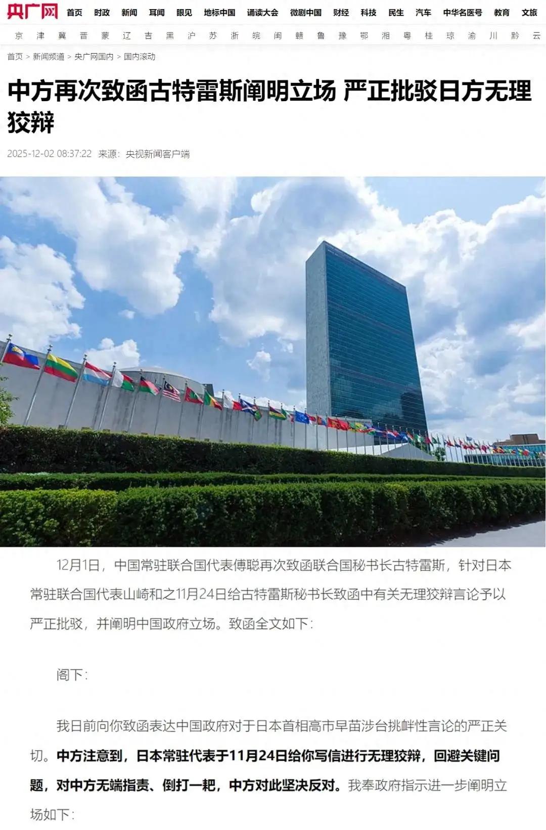 还在嘴硬。一边是在联合国舞台上对着信函撒泼式狡辩,一边是国内国债收益率飙至17年新高的经济悬崖,高市早苗政府的“嘴硬”戏码,早已成了国际社会的滑稽注脚。难道真以为靠倒打一耙,就能掩盖其搅动区域局势、透支国家未来的野心? 12月4日,日本驻联合国大使山崎和之仍在致函古特雷斯炒冷饭,坚称日方“被动防御”的说法属实,指责中方主张“无依据” 。这就像小偷被抓现行后还喊冤,中方此前已在联合国怒批其“五宗罪”,直指其将“台湾有事”与本国存亡绑定的言论,早已突破“专守防卫”的伪装,是赤裸裸的进攻主义。更讽刺的是,高市早苗一边叫嚣要国际社会联合反华,一边连日方所谓“一贯对华立场”都不敢正面回应,这种自相矛盾的话术,堪称外交界的“小丑表演”。 外交上的逞强,更难掩其经济上的窘迫。日本三十年期国债收益率已从2022年的0.69%飙升至3.4%,债务占GDP比重达260%,12月1日日央行释放加息信号后,日股一度跌超2% 。若说外交挑衅是给日本套上的“枷锁”,那经济困局就是压垮它的“巨石”。 正如《联合国宪章》“敌国条款”所警示的,二战战败国的底色不容篡改,而债台高筑的经济也经不起折腾。高市早苗的嘴撑,不过是给日本右翼的覆灭倒计时罢了。