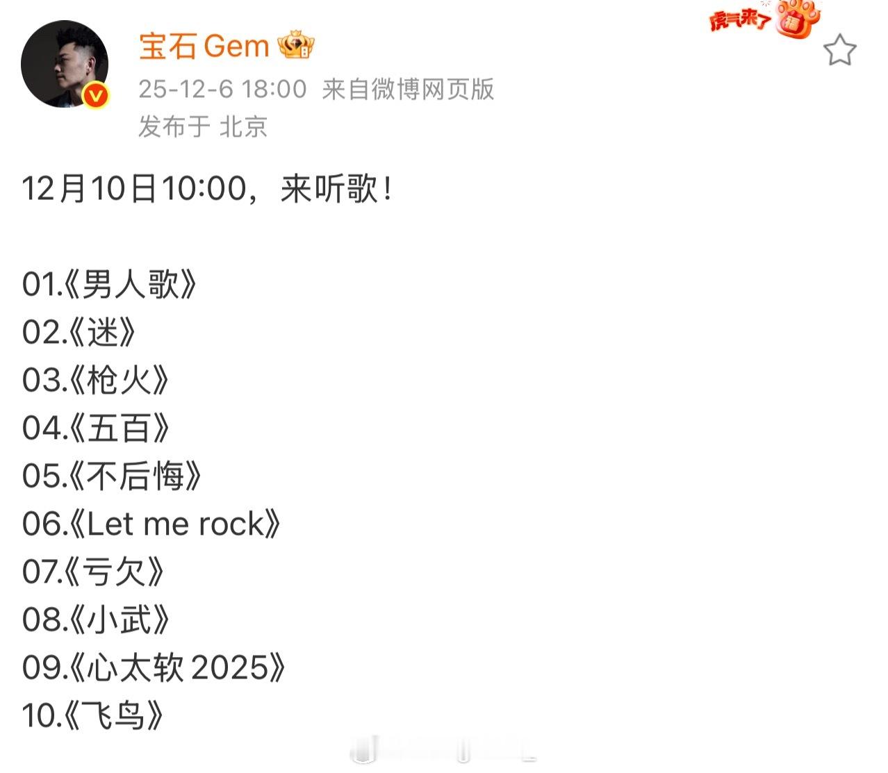 来了!宝石老舅公开《通俗说唱》曲目🔥10号发布!此前老舅曾表态这是一张“去说唱
