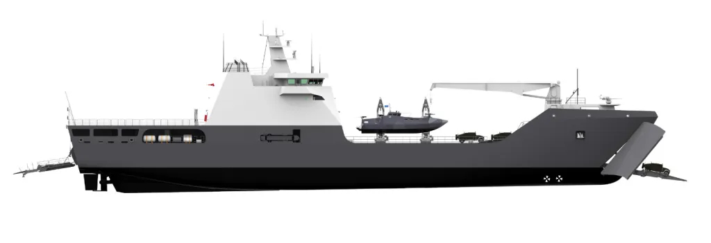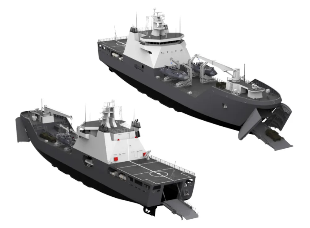 美国海军选定的中型登陆舰(LSM)方案,荷兰达门公司的LST-100,长100米,宽16米,排水量4000吨,航速14节,航程6300公里,美国海军将在此基础上适当修改,预计采购35艘,2026年首艘开工建造,2029年交付。烽火问鼎计划