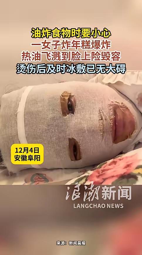 悲剧还是发生了!12月4日,安徽阜阳,一女子嘴馋想吃炸年糕,于是找出冰箱里的年糕,化了一天冻后放进锅里炸,没想到年糕突然爆开,滚烫的热油瞬间溅到女子脸上和手上!目前仍在治疗中。 网友评论:应该是年糕里面水分太多。 年糕是化开了,但是年糕里面的水没干,水遇见油爆炸很正常。再说了年糕不应该用油炸,应该用少量油慢煎,用点白糖,煎出来也挺好吃的! 冰箱里的年糕拿出来以后,放在蒸锅里蒸熟再吃。这样即吃起来热乎又不被油烫伤,就是耗了几块钱的电费。 重要的事情说三遍,炸制食品必须佩戴头盔 我去年夏天也是炸年糕油锅炸了,最严重的伤在右手,当时正好伸手去翻年糕,整只手脱了一层皮。庆幸的是:脸上、脖子、手臂都没有留下明显的疤痕。