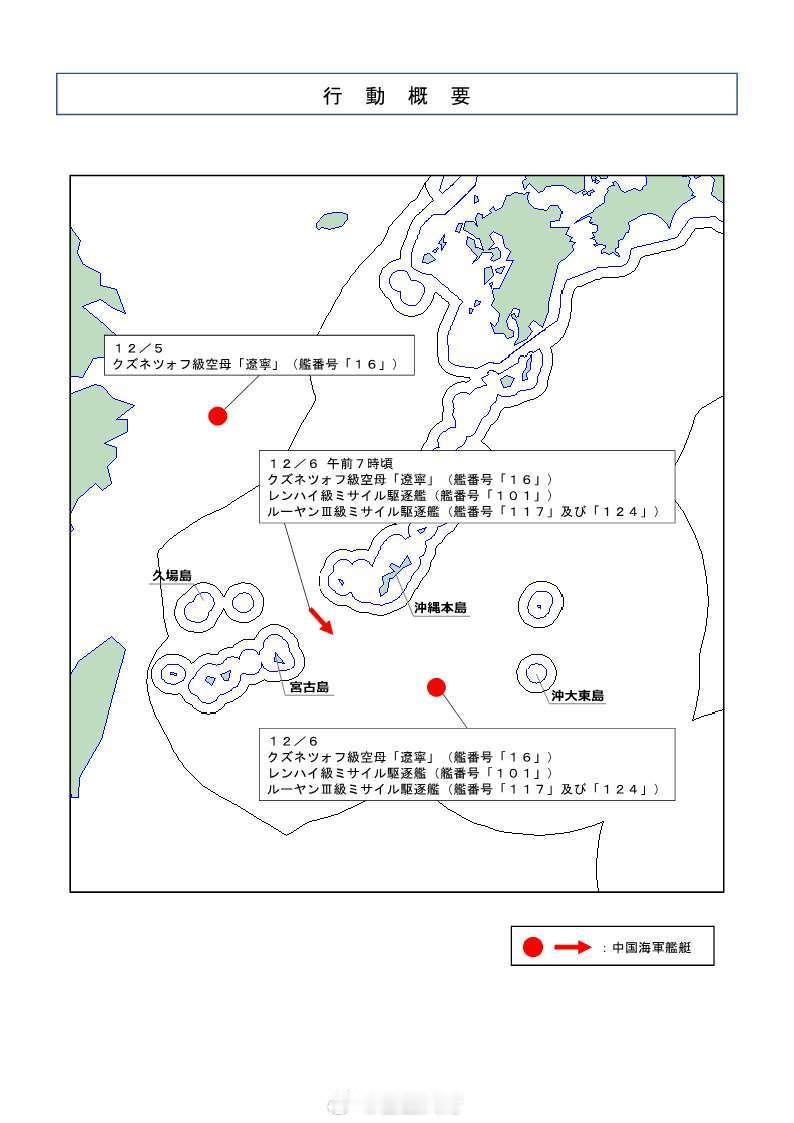 12月6日,日本统合幕僚监部确认包括航空母舰辽宁号、1艘055和2艘052D导弹驱逐舰在内的共4艘舰艇,从冲绳本岛和宫古岛之间的海域向东南方向驶往太平洋。辽宁号航空母舰上也确认有舰载战斗机和其他飞机起降航空创作计划武器装备海军