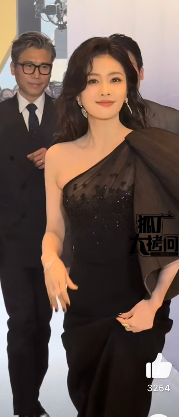 白鹿尖叫之夜红毯直拍来啦,这套黑色长裙完全暗黑千金风,太酷啦!