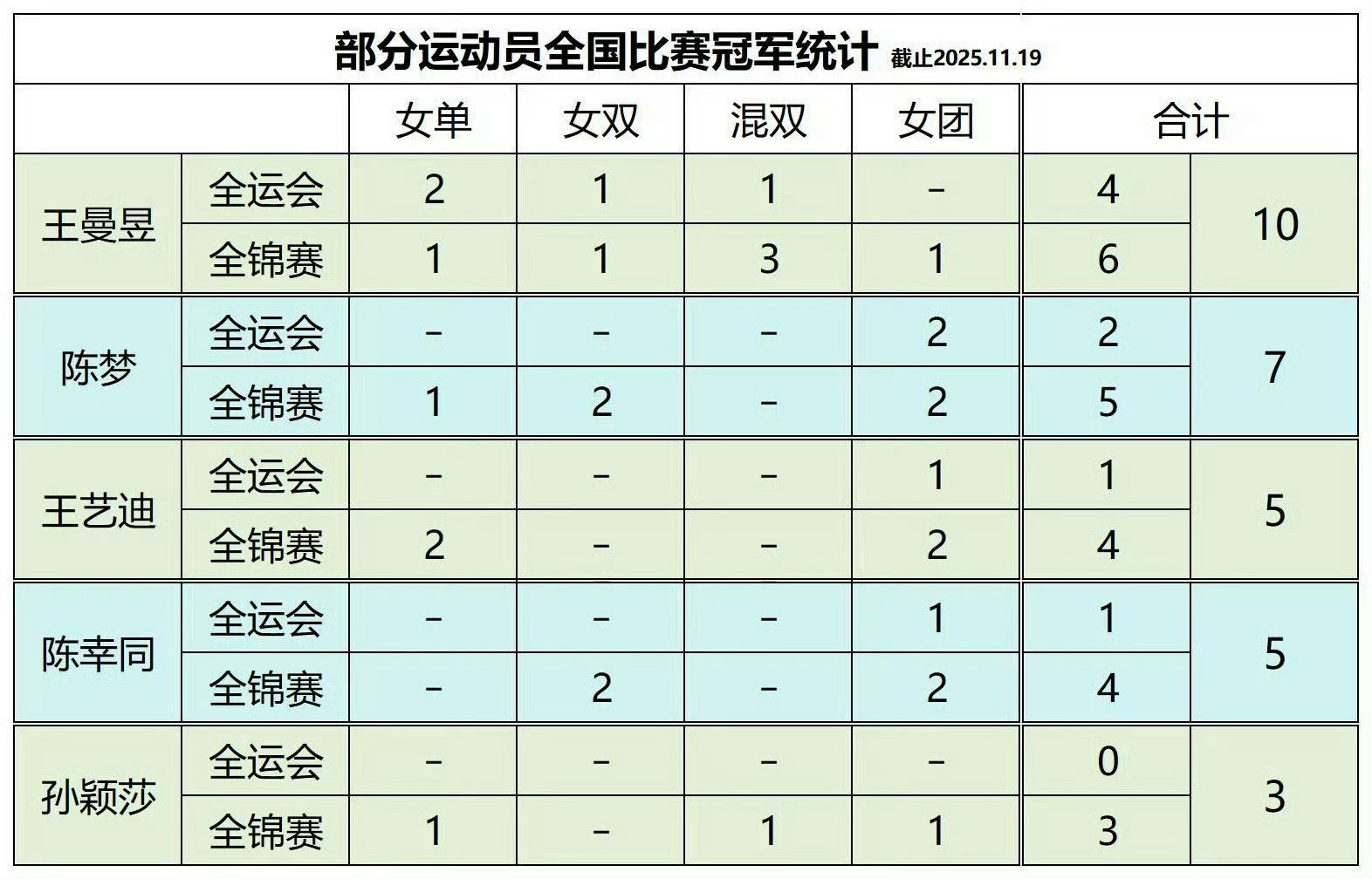 王曼昱获体育道德风尚奖女队唯一一个九大赛进度已完成第七个的运动员两届全运会女单冠军🏆共获得四枚全运会冠军这一切都是王曼昱一步一个脚印拿下的健康涨球,我还要看你打很久很久的比赛顺利健康