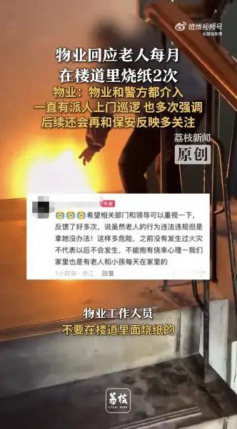 关于楼道烧纸的情况,确实在一些社区或居民区中曾经遇到过类似的现象。这种行为在某些地区被认为是传统习俗的一部分,特别是在祭祀、祭祖等场合,烧纸是表达祭祀意愿的方式。然而,随着城市管理的加强和安全、环保的考虑,楼道等公共空间燃烧纸钱的行为逐渐被限制甚至禁止。 你提到的案例总结: 地点:杭州东新园小区 情况:一位老人每月两次在楼道烧纸 反应:物业回应已处理,警方和物业都介入,和老人沟通,提醒注意安全和环境卫生 公众反应:有人投诉,物业和相关部门也在积极应对 相关问题分析: 安全隐患:楼道空间狭小,燃烧纸钱可能引发火灾或空气污染,存在安全隐患。 环保与文明:城市管理提倡文明祭祀,减少燃烧纸钱等行为,以保护环境和公共卫生。 传统习俗与现代管理的冲突:部分老人坚持传统祭祀习惯,但在现代城市环境中需要平衡传统与安全、文明的要求。 物业和社区的应对措施: 沟通引导:与老人沟通,理解其祭祀需求,建议采用环保、安全的方式,比如使用电子祭祀、在指定区域祭祀。 加强管理:加强巡查,提醒居民遵守相关规定,避免在公共空间燃烧纸钱。 宣传教育:倡导文明祭祀,尊重传统同时兼顾公共利益。 结语 楼道烧纸的现象反映出传统习俗与现代城市管理的矛盾,合理引导和沟通是关键。既要尊重传统,也要保障公共安全和环境卫生。希望社区和居民共同努力,找到既尊重习俗又符合城市文明的解决方案。 如果你有更具体的问题或需要建议,也可以告诉我!