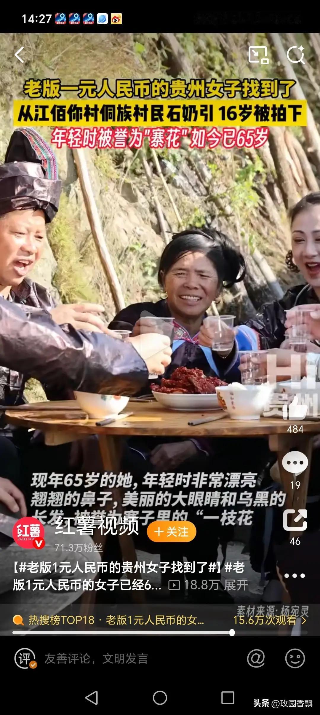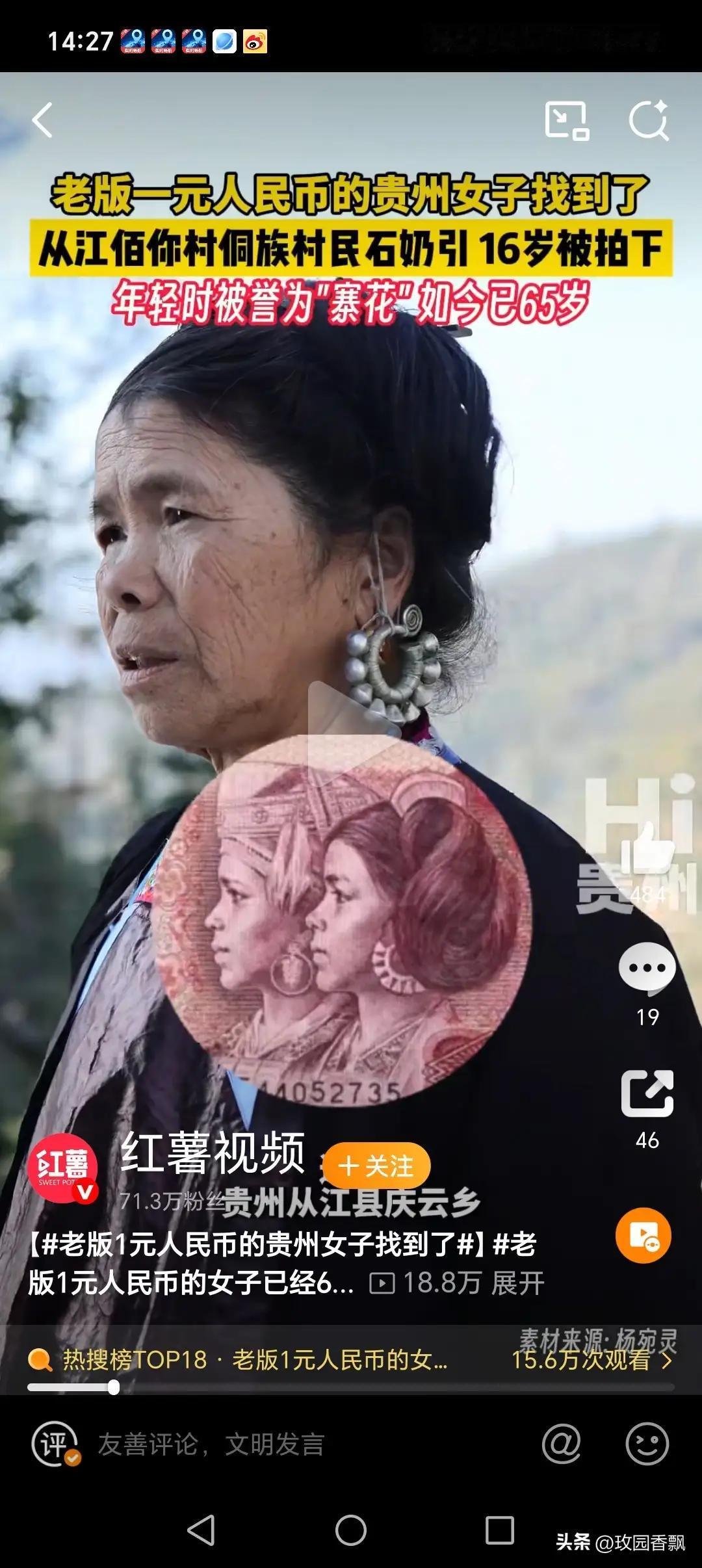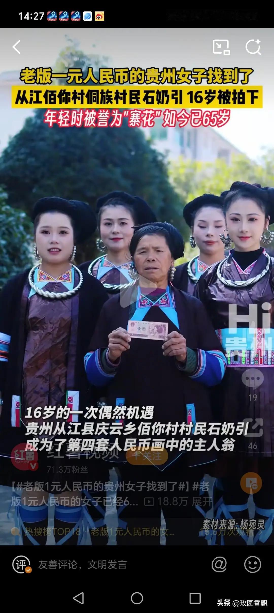 上了年纪老一辈现在还记得老版红色一元人民币吧,中间那个青春可爱的少女让一代人记忆犹新,她就是贵州从江庆云乡icon佰尔村村民石奶引,当年16岁的石奶引正在赶集被候一民icon发现了,候一民当年是第四套一元人民币的设计师,石奶引的出现让候一民眼前一亮,所以石奶引理所当然成了一元侗族icon的头象,如今石奶引己经65岁了!老版一元人民币上的女子找到了 老版一元人民币上的女子找到了