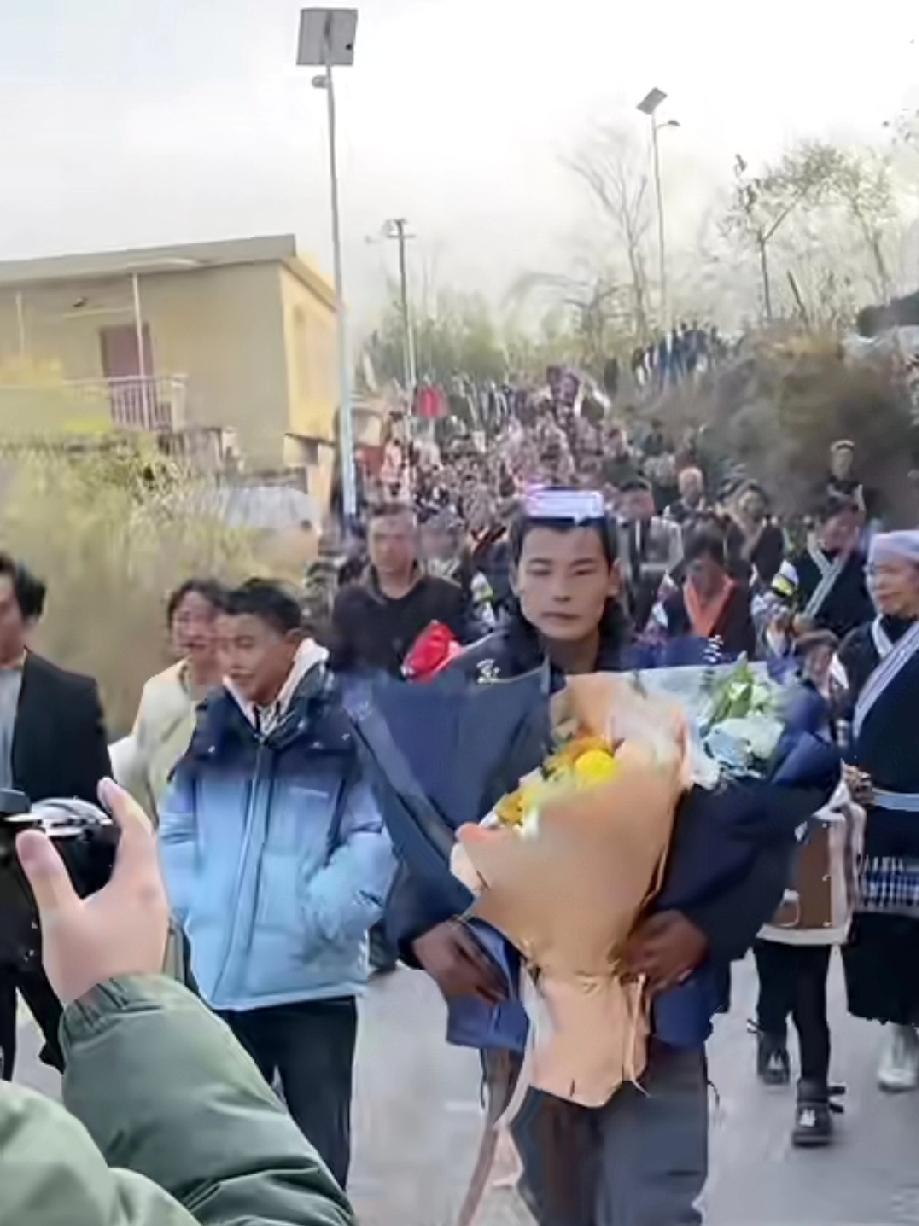 刀疤哥回家乡了,全村出动迎接还拉了条幅,迎接的队伍吹起了本地乐器芦笙,人山人海手捧鲜花,刀疤哥双手插兜走向家的方向。 真羡慕刀疤哥的村民们,可以随时看到刀疤哥,只希望他们不要成了大衣哥的村民那样,无数镜头时刻对准大衣哥,给大衣哥日常生活都造成了困扰。 刀疤哥还和亲戚朋友合影了,不过刀疤哥不太适应这种热闹的气氛,神情还很严肃。熟悉刀疤哥的人都知道,刀疤哥在荒山老林里都能席地而睡的人,这种场合可以说是很不适应了。荒野刀疤哥 贵州刀疤哥