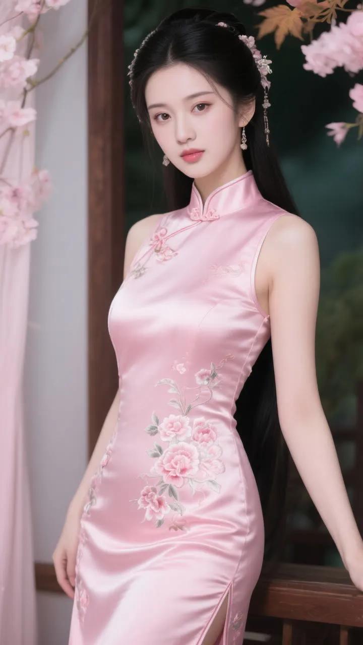 温柔笑颜,粉色旗袍,优雅气质,尽显东方美。
