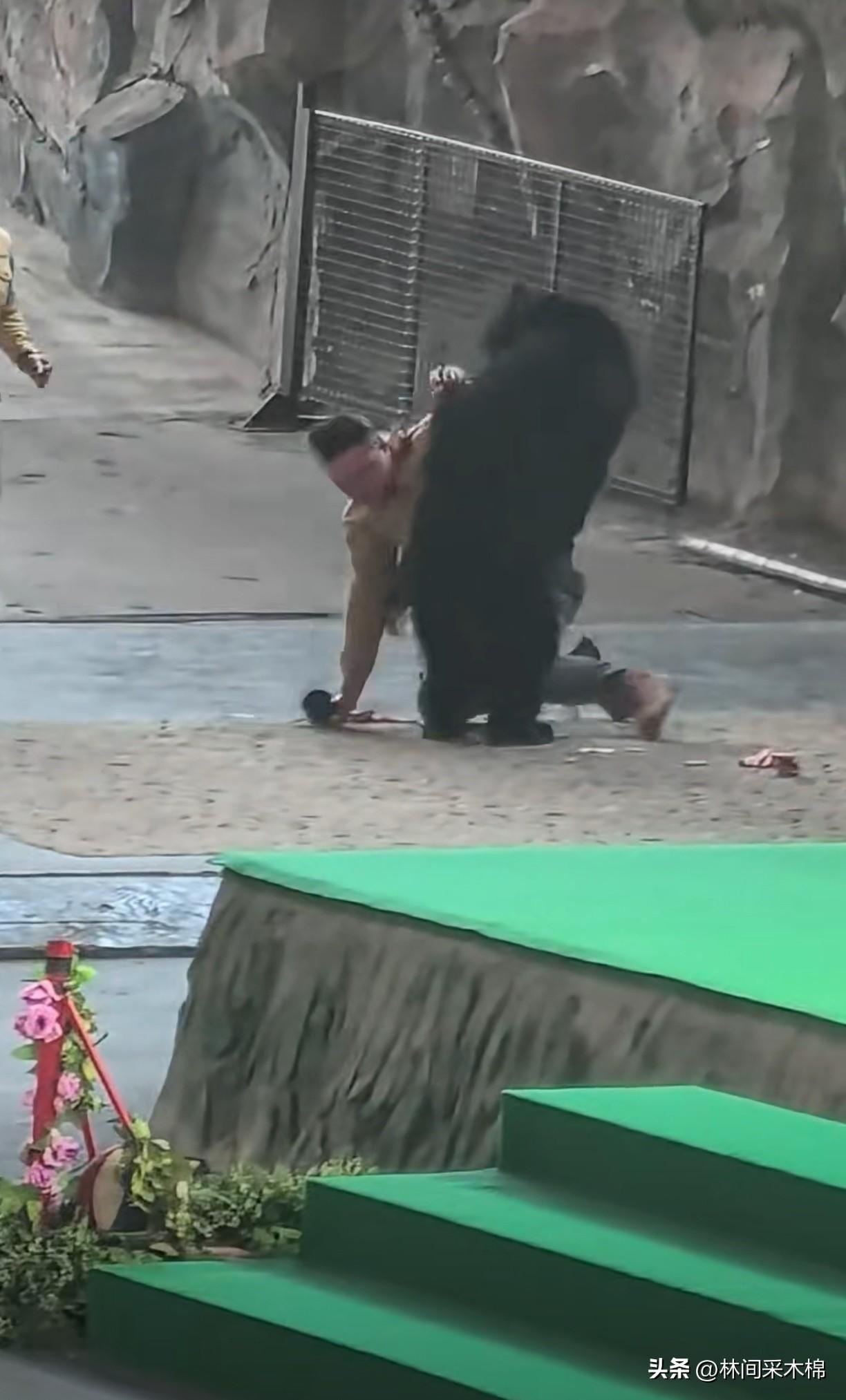杭州动物园黑熊攻击饲养员,太惊险了! 今天在杭州动物园发生惊险一幕,饲养员带着黑熊刚刚表演完,正要退场,谁知道黑熊突然暴躁起来,把身边的饲养员直接扑倒在地! 其他人还没有反应过来,饲养员被黑熊按在身子下面,刚努力挣脱站起身,再次被扑倒,观众都惊出一身冷汗!索性在其他几个饲养员的帮助下,终于脱困! 看到周围围栏只有一米多高,我都替观众捏把汗!黑熊有发情期,脾气会变得暴躁,如果黑熊冲向人群,这个围栏绝对是拦不住它的! 观看动物表演一定要注意安全第一啊! 黑熊袭击 动物园安全事故