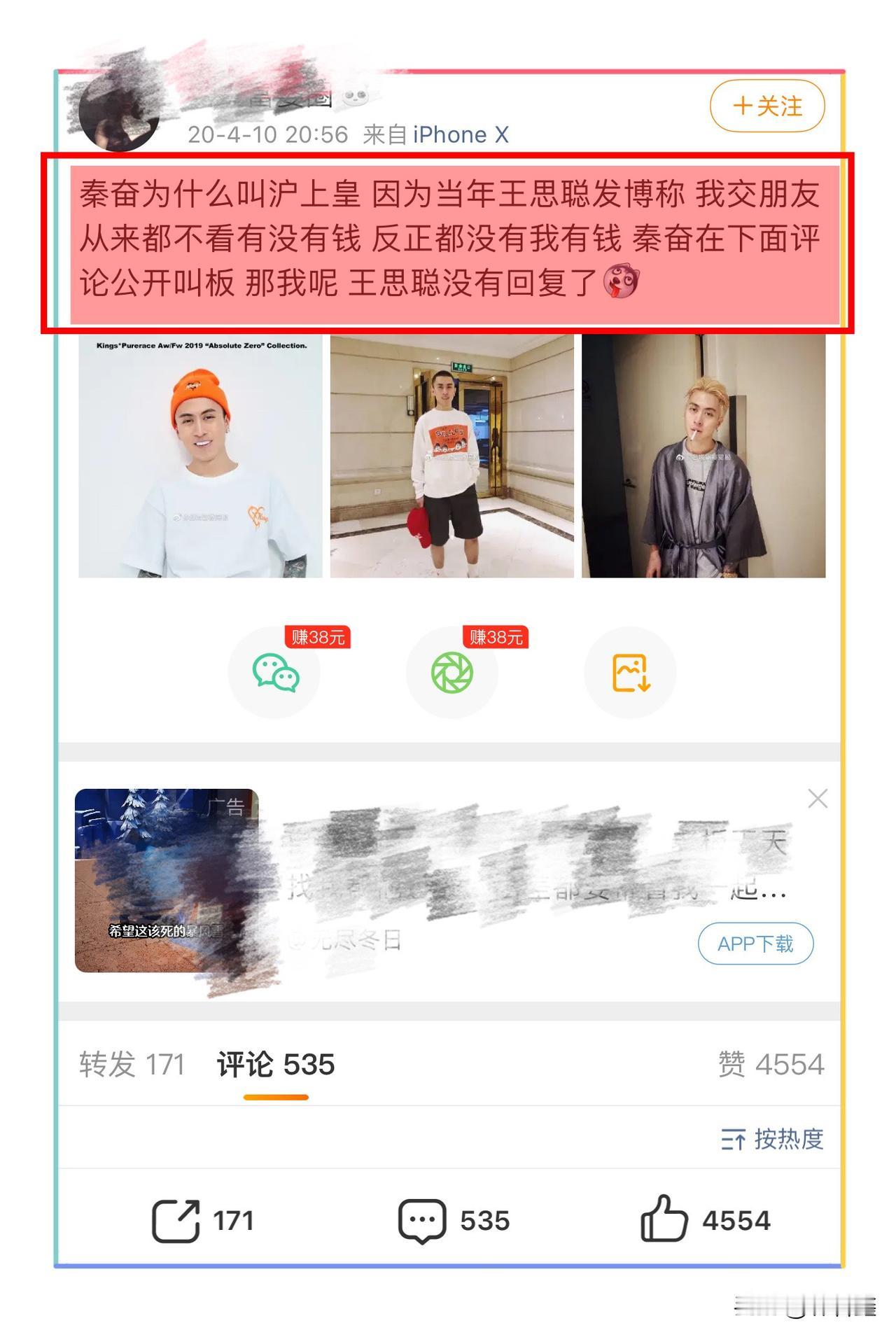 王思聪、秦奋先后现身二世古,王思聪打扮时髦,秦奋一头黄发抢镜! 近日有网友在日本二世古偶遇了王思聪,不得不说这很有缘分,难得的王思聪身边没有女性朋友,就王思聪一个人,这场面绝对很少见! 王思聪打扮时髦,戴着粉色的帽子,看上去很有活力,不得不说王思聪虽然37岁了,可是依旧有一颗少女心,很多鞋子衣服都是粉色,这次也没有见王思聪女友懒懒,想必王思聪买完滑雪用具就要去滑雪了,看看王思聪到时候带的是哪个美女! 据偶遇的博主讲述,在这之前“沪上皇”秦奋也现身二世古,秦奋梳着小寸头。染的黄色,穿着短款羽绒服,阔腿牛仔裤,看上去像精神小伙, 之前王思聪曾说过他的朋友都没他有钱,秦奋说那我呢,不知道他俩到底谁有钱?不过可以看得出来两个人是好朋友,这次前后现身二世古,不知道会不会小聚一下,期待王思聪秦奋同框! 王思聪 秦奋 王思聪秦奋