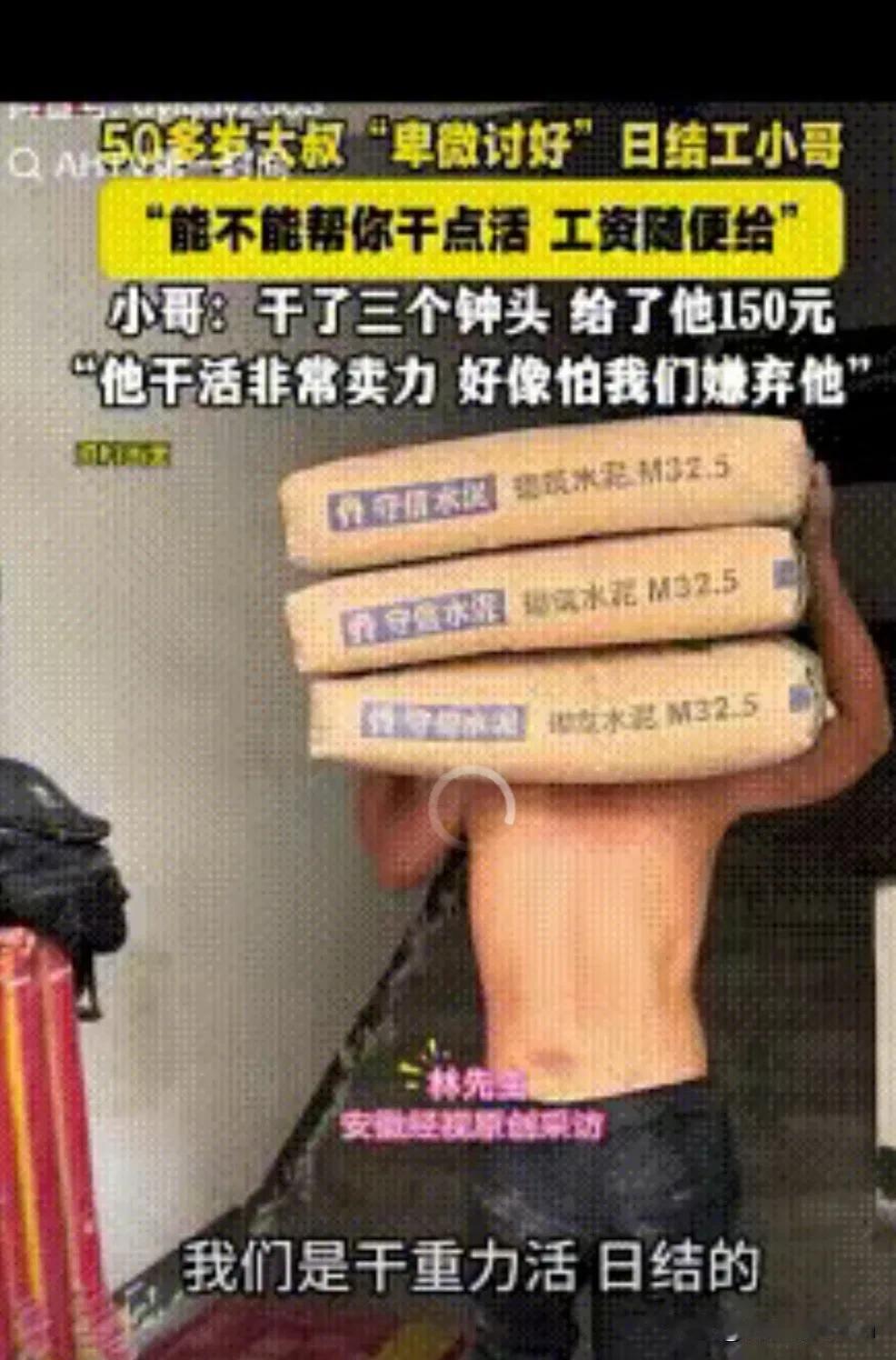 “求你让我帮你干点活,工资随便给!”广东广州,50多岁大叔找不到工作,都没钱吃饭了,于是卑微的祈求小哥给他的工作的机会,工资随便给点就行,最后干了3个小时,给了大叔150块钱。小哥:他干活非常卖力,好像怕我们的嫌弃他! 大叔跟着小哥去干活时,没等吩咐就主动攥起了墙角的拖把,连水都没多问一句就往地上拖。不是他不怕累,是他知道这机会是求来的,慢一步都可能被人嫌“没用”。 50多岁的人,手背皱得像揉过的纸,指关节上还留着老茧,那是年轻时在工地搬砖、在工厂拧螺丝磨出来的。拖完整个屋子,他直起身时会悄悄揉一下腰——年轻时腰受过伤,长时间弯腰会疼,但他没说,怕小哥觉得他扛不住活,下次再不给机会。 他哪是“随便给点工资”就行,是真的走投无路了。之前跑了半个月劳务市场,工厂说他年纪大,熬不了夜班;餐馆要年轻的服务员,说“形象更精神”;连小区里招垃圾分类员,都优先选手脚更麻利的阿姨。 饿了两天,路过小哥的店时,看见里面在搬东西,才在门口徘徊了十几分钟,鼓足勇气上前开口。那句“工资随便给”,声音小得像蚊子叫,藏着的全是无奈——他不是不想要合理的报酬,是怕提了要求,连这唯一的活都没了。 干3个小时给150块,其实比当地零工市场价高了不少,小哥没说破,是看不得他那股小心翼翼的劲儿。 大叔擦桌子时,会把抹布拧得滴水不沾,连桌角的油渍都要反复擦三遍;搬箱子时,会先把箱子上的灰尘拍干净,再抱在怀里,怕蹭脏了小哥的东西。不是他刻意讨好,是他太怕被嫌弃——之前有次帮人搬货,就因为动作慢了点,老板念叨了两句“老了就是不行”,他当天晚上没睡着,总觉得自己没用。 这种“怕被嫌弃”的小心翼翼,是太多中年劳动者的缩影。他们没读过多少书,一辈子靠力气吃饭,可到了50多岁,体力不如从前,又跟不上新行业的节奏,像被卡在了夹缝里。 上有老人要赡养,下可能还有没稳定工作的孩子,不敢歇,也不能歇。哪怕饿肚子,也不想跟家里说,怕家人担心,只能自己硬扛,看见有活干就像抓住了救命稻草,拼了命也要做好。 小哥说“他干活非常卖力”,其实那不是卖力,是大叔把这份临时的活当成了“活下去的希望”。 攥着150块钱的时候,他手指都有点抖,先去路边买了两个馒头,啃得很慢,然后把剩下的钱叠得整整齐齐,塞进贴身的口袋里——那是要留着给老家的母亲买降压药的。他没跟小哥说这些,只是临走时鞠了个躬,反复说“谢谢”,转身时脚步都比来时轻快了些。 没人愿意卑微祈求,大叔的低头,是生活压出来的。社会总在谈论“就业机会”,可很少有人注意到,这些中年体力劳动者,他们不要光鲜的岗位,不要高额的工资,只要一个能靠自己力气挣钱的机会。多给他们一点包容,少一点“年纪大不行”的偏见,让他们不用再怕被嫌弃,不用再卑微求活,才是对每一个努力生活的人最基本的尊重。 各位读者你们怎么看?欢迎在评论区讨论。